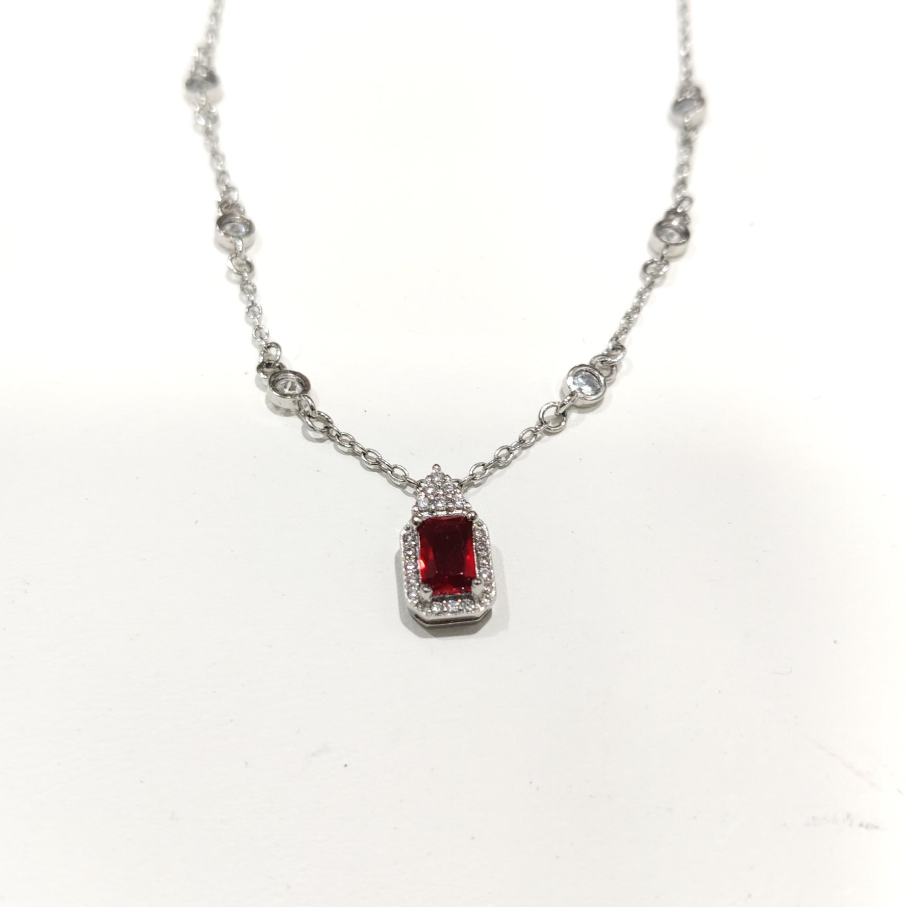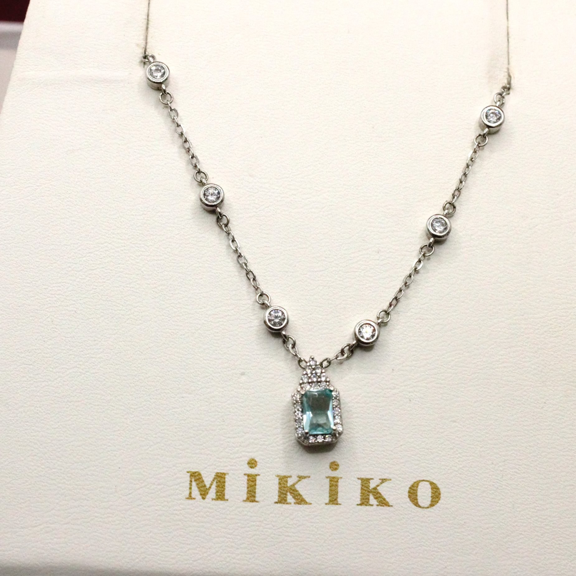 Mikiko collana donna con swarovski bianchi e azzurro centrale in argento 925
