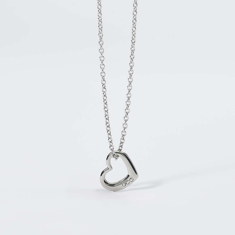 Collana con cuore stilizzato al cui interno sono incastonati 3 zirconi sul lato