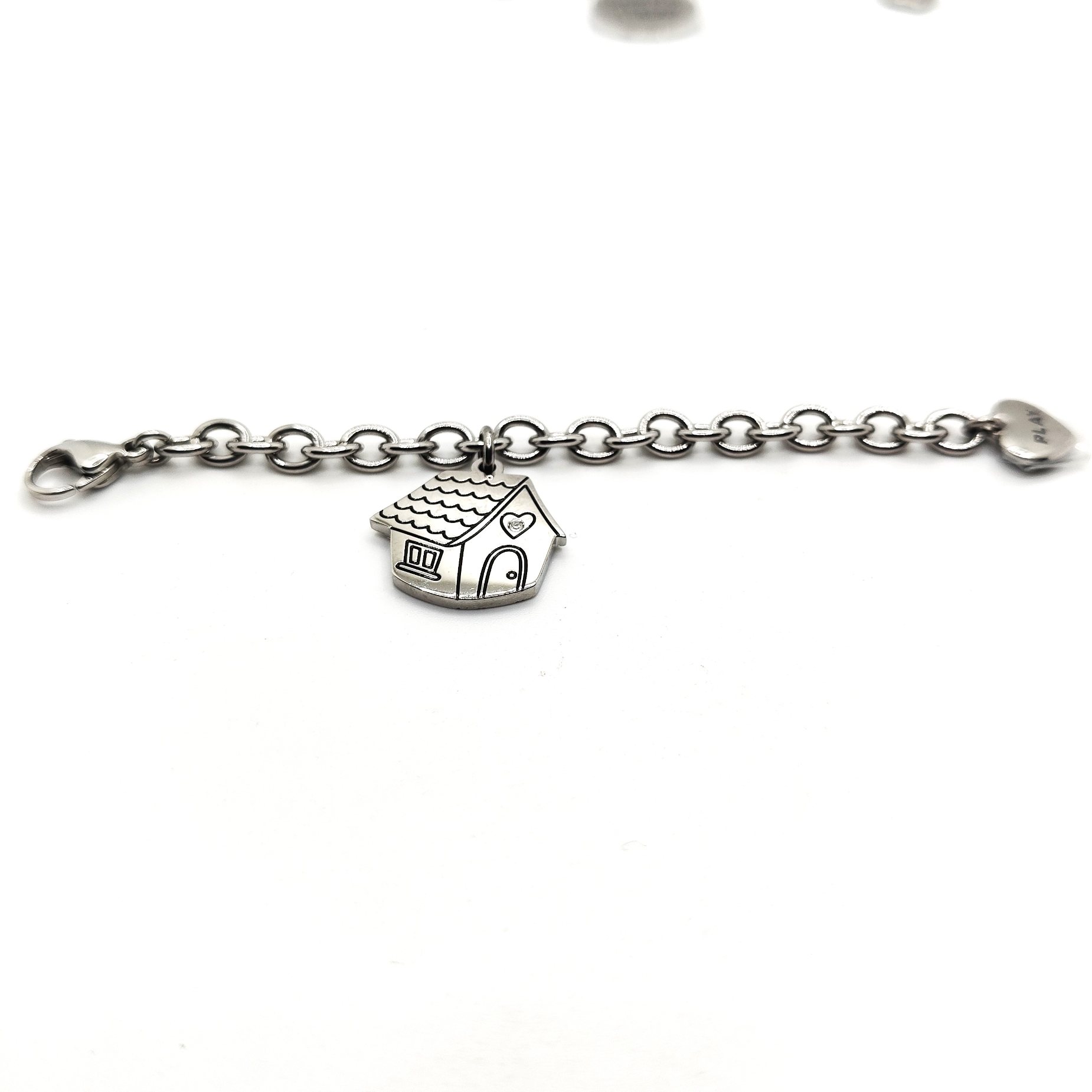 Bracciale della collezione play together in acciaio 316L ipoallergenico con simbolo della casa da abbinare con un altra metà bracciale con diverso messaggio o simbolo! Divertiti a scegliere quello che più ti rappresenta. Chiusura a moschettone regolabile.