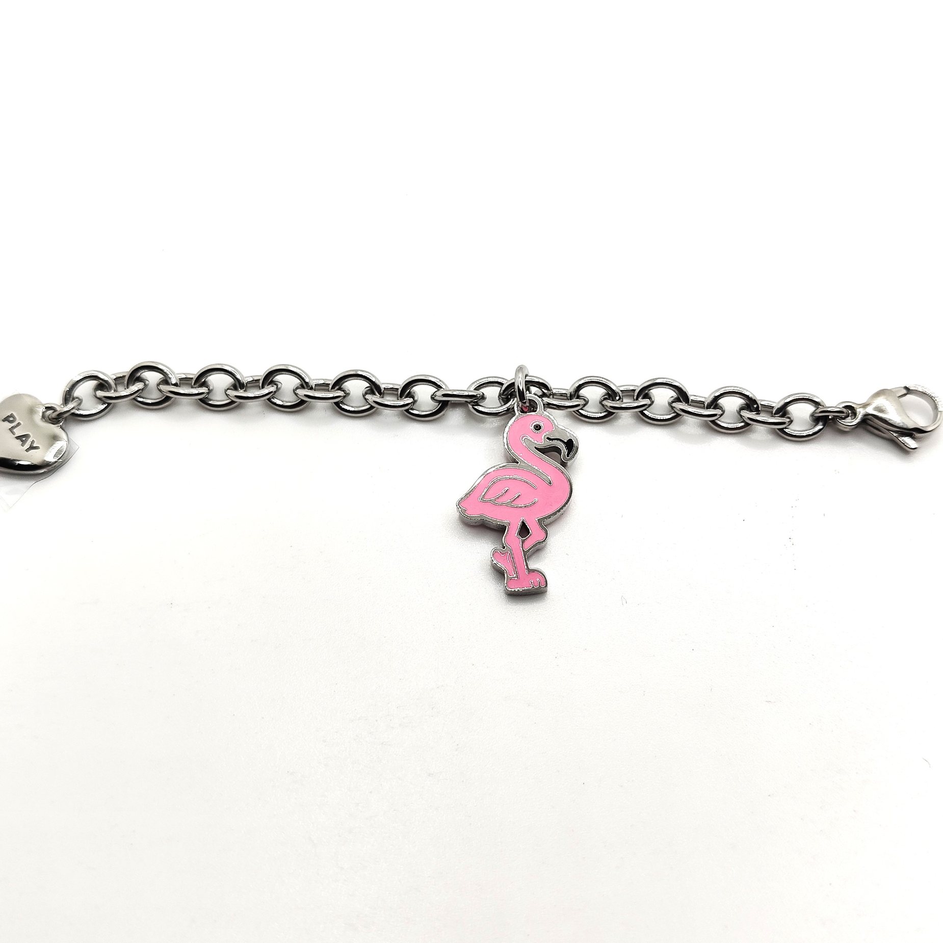 Bracciale della collezione play together in acciaio 316L ipoallergenico con FENICOTTERO da abbinare con un altra metà bracciale con diverso messaggio o simbolo! Divertiti a scegliere quello che più ti rappresenta. Chiusura a moschettone regolabile.