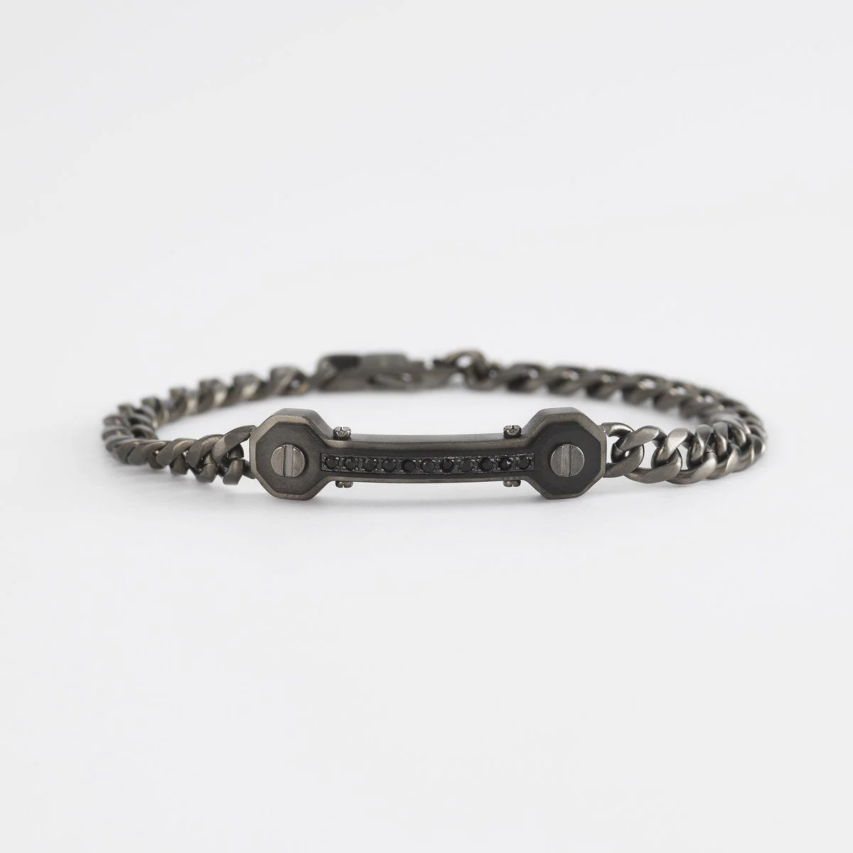 Bracciale asimmetrico in acciaio 316L pvd nero/gunmetal e zirconi