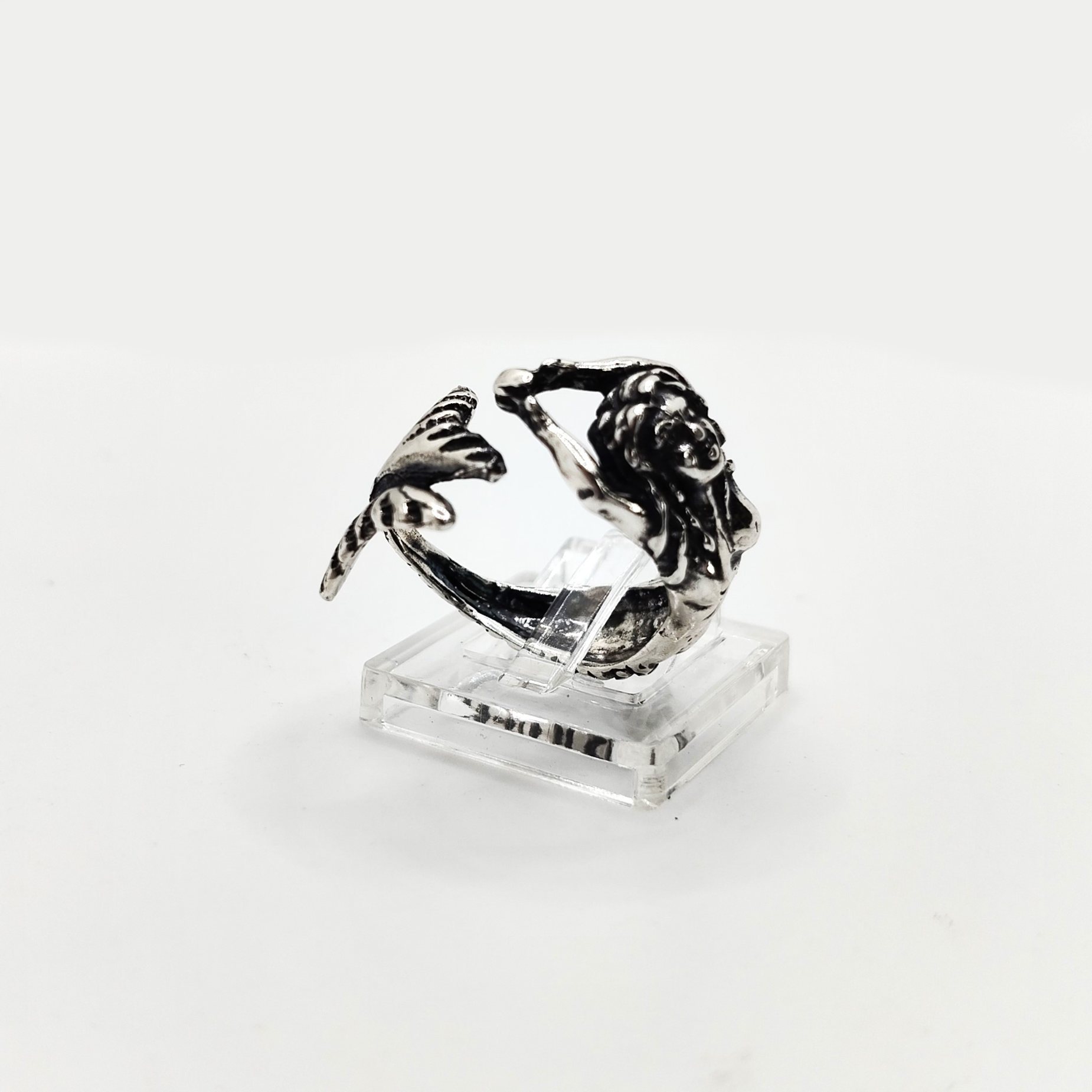 Anello fatto a mano da artigiani in argento 925 raffigurante una sirena