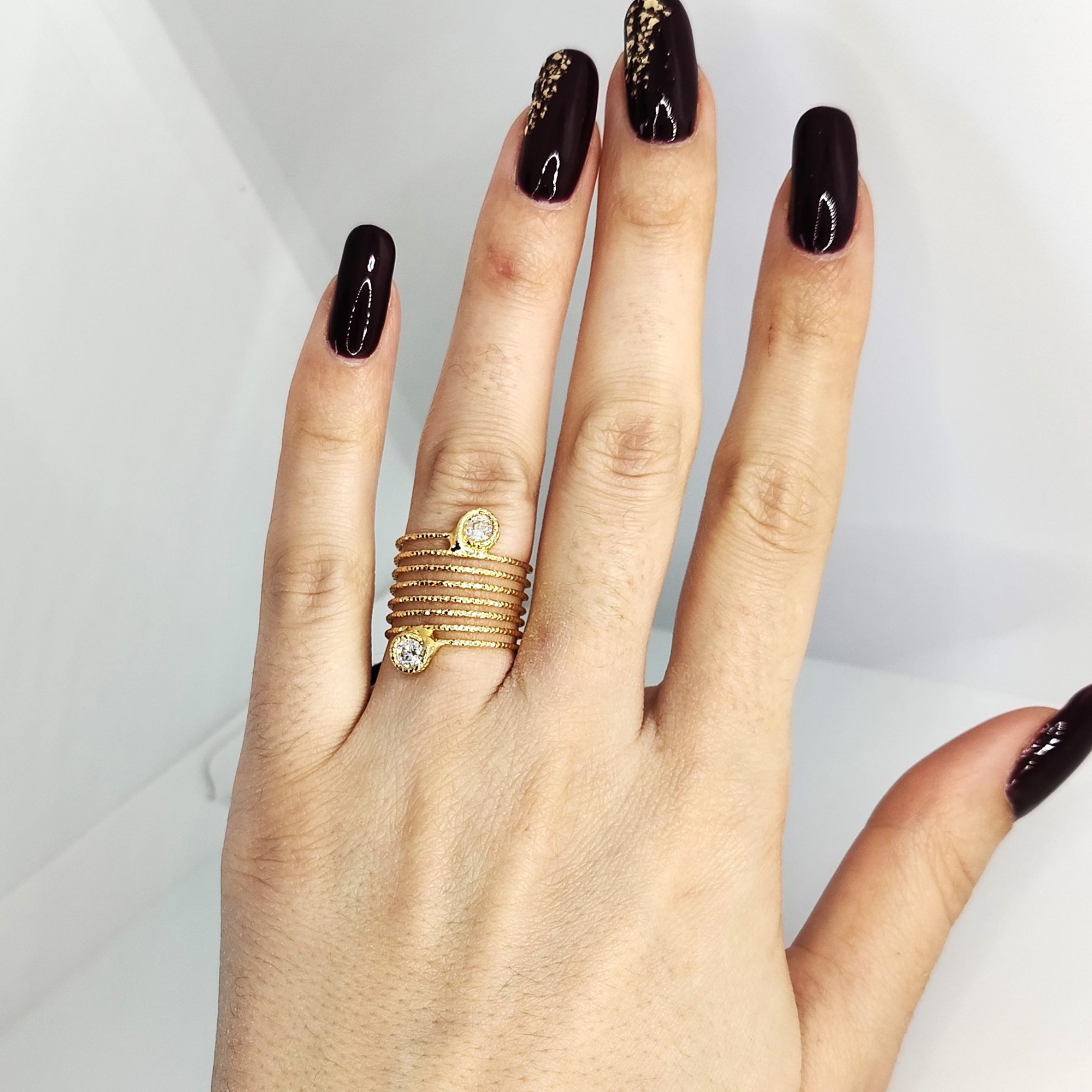 Anello multifilo a dito pieno (misure 10 a 18) in bronzo placcato oro giallo o argento, lavorazione a mano made in Italy.