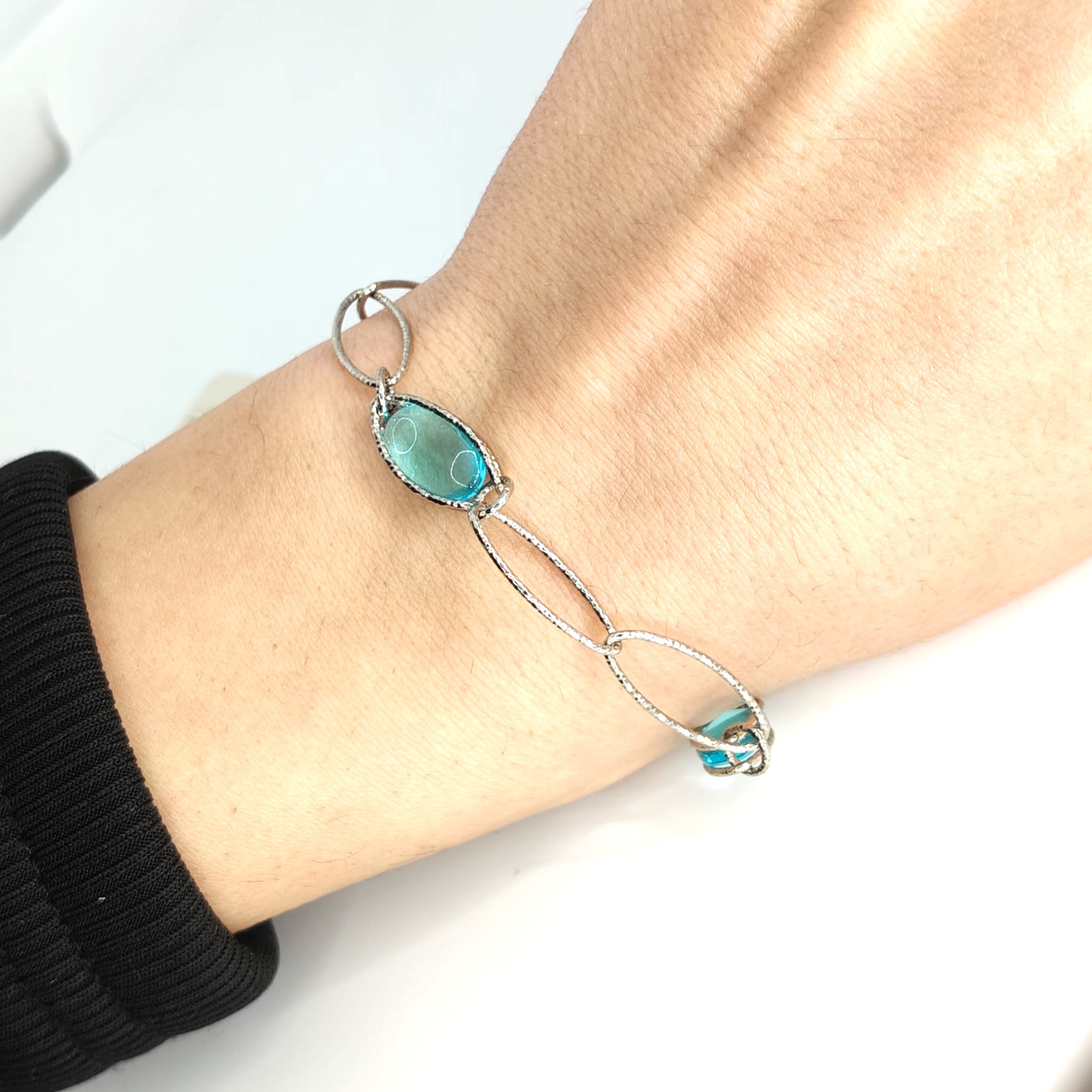 Bracciali con pietra blu o azzurro acqua marina in bronzo rodiato argento lavorato a mano in Italia