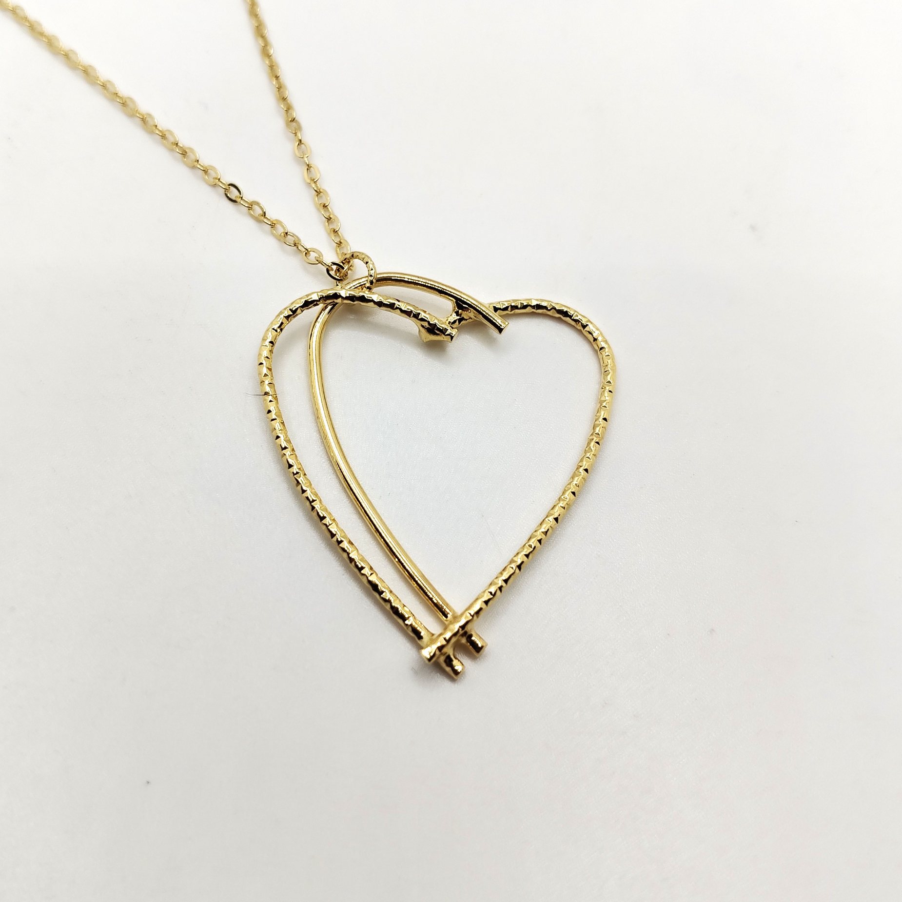 Collana a cuore in bronzo placcato oro giallo lavorato a mano in Italia