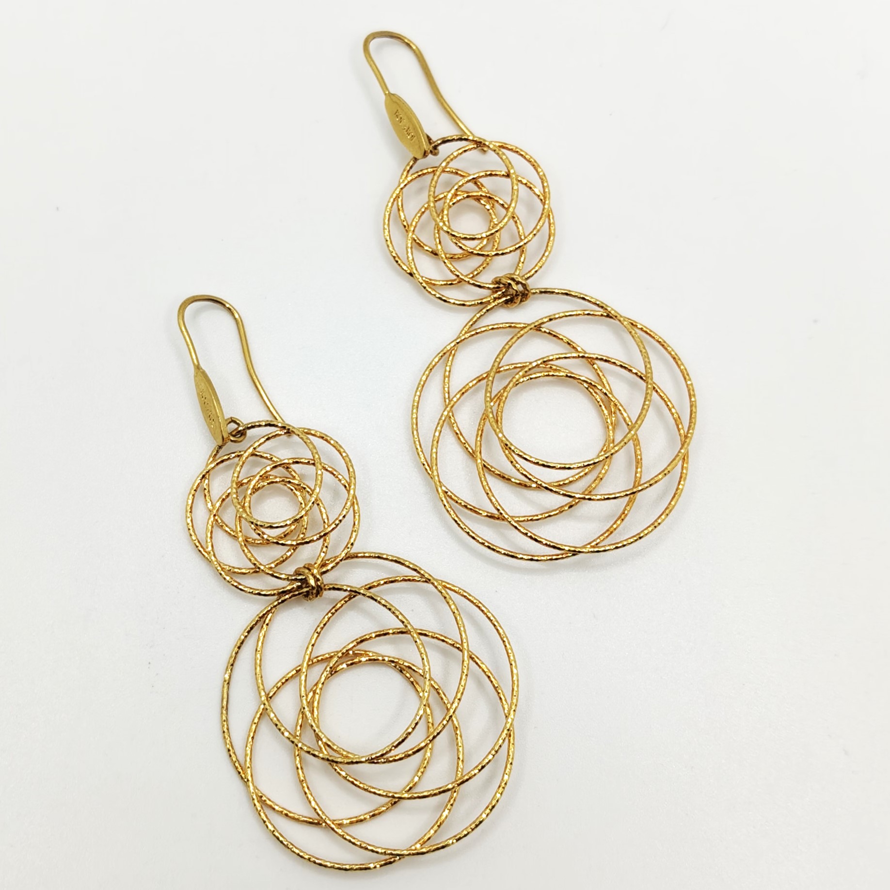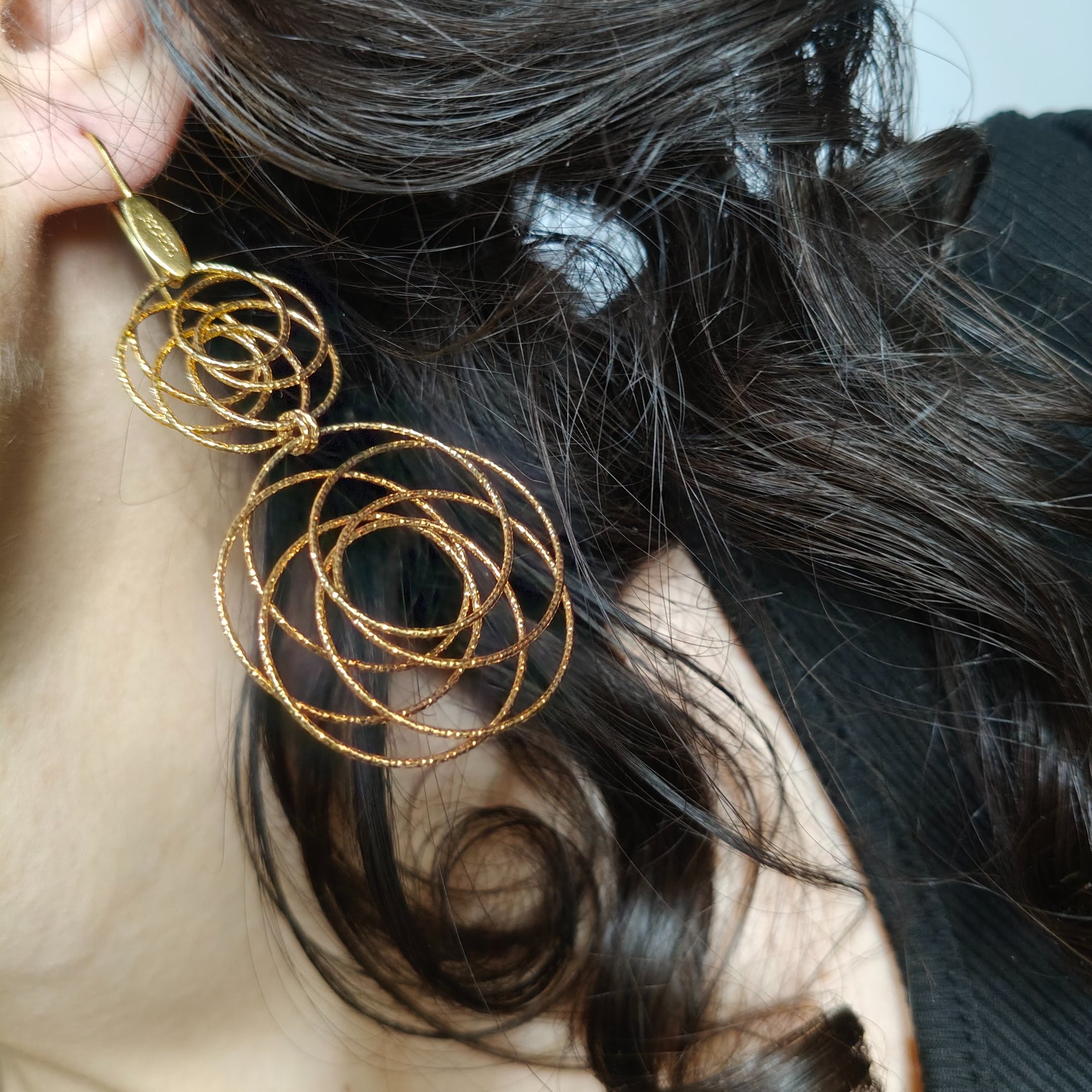 Orecchini con 2 rose media/grande in bronzo placcato oro lavorato a mano made in Italy