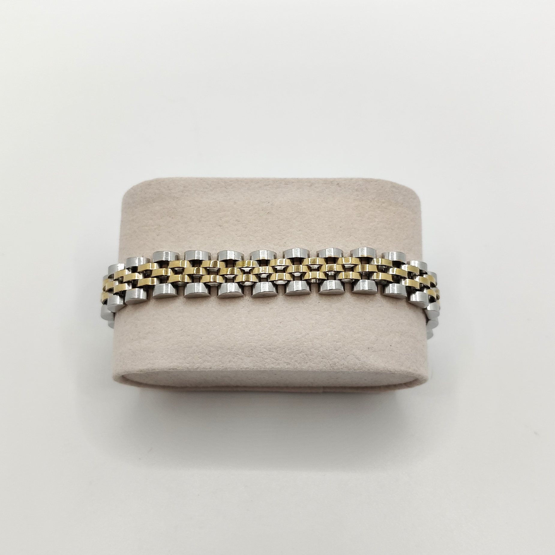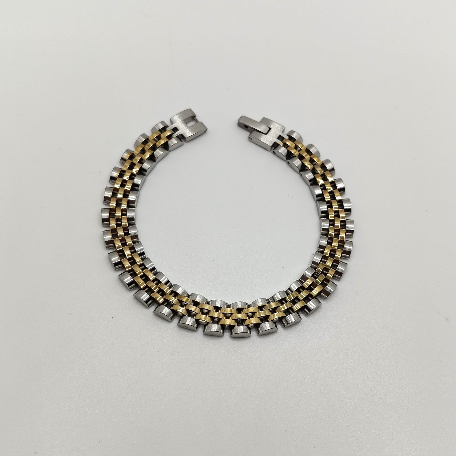 Bracciale da uomo in acciaio e acciaio placcato oro giallo. Chiusura a scatto.