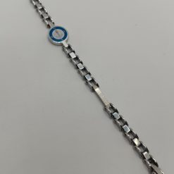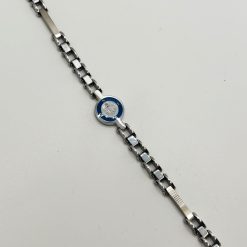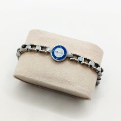 Bracciale da uomo in acciaio, dettaglio smaltato nella targa centrale con un ancora raffigurata e i punti cardinali. La lunghezza è variabile grazie alla doppia chiusura facilmente rimuovibile.