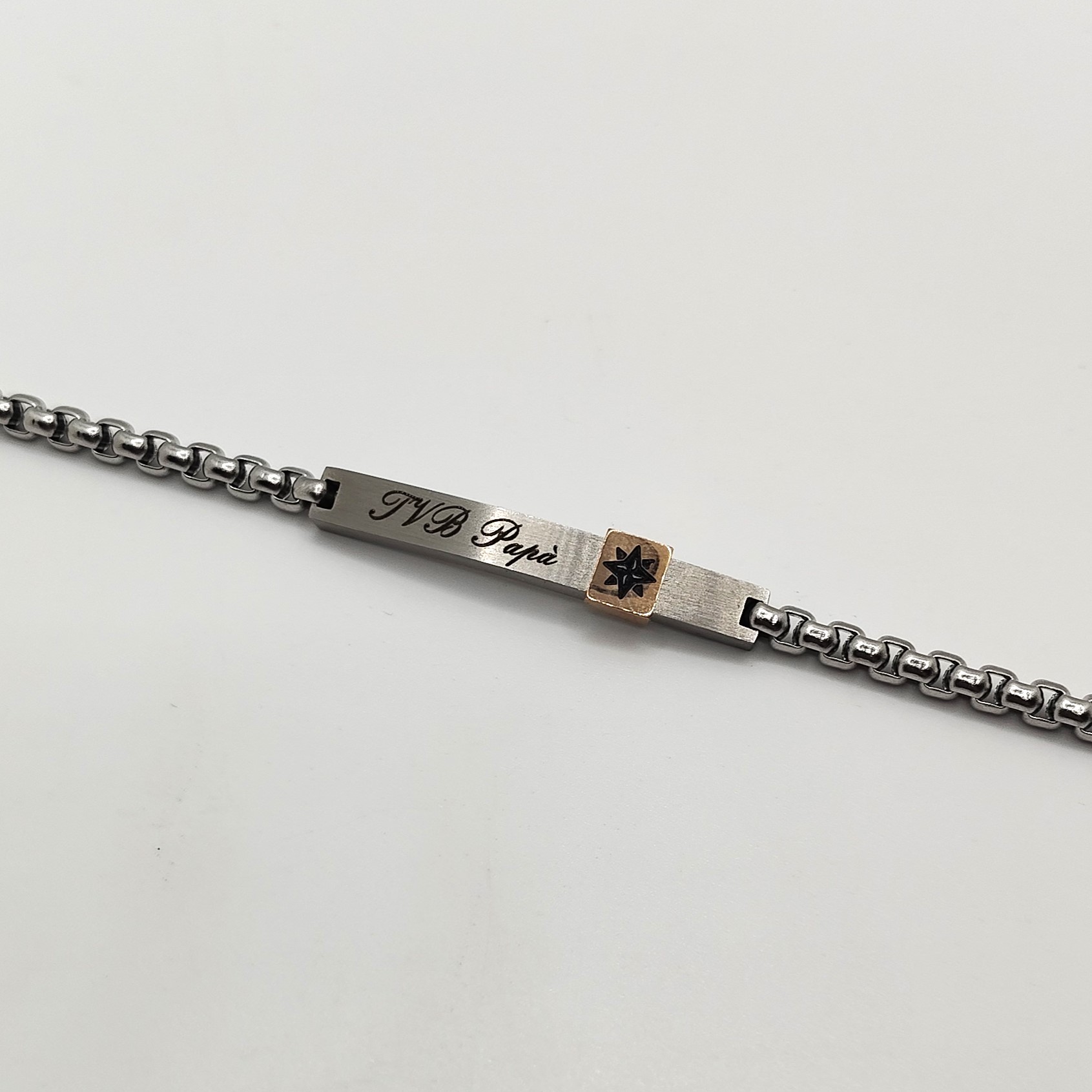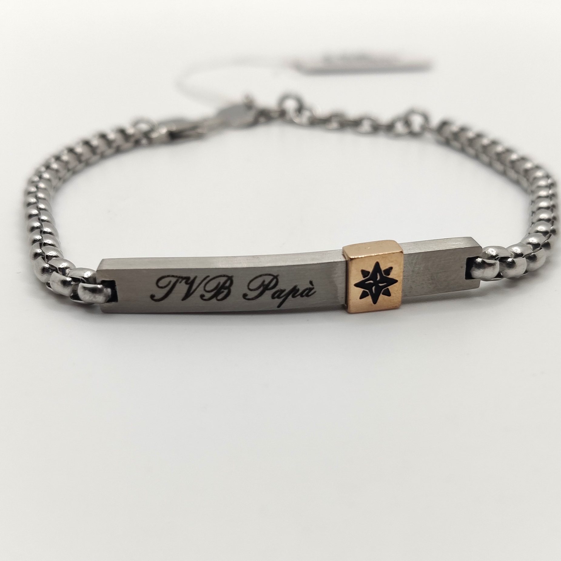 Bracciale da uomo in acciaio targa centrale con scritto “t.v.b. papà” regolabile