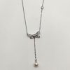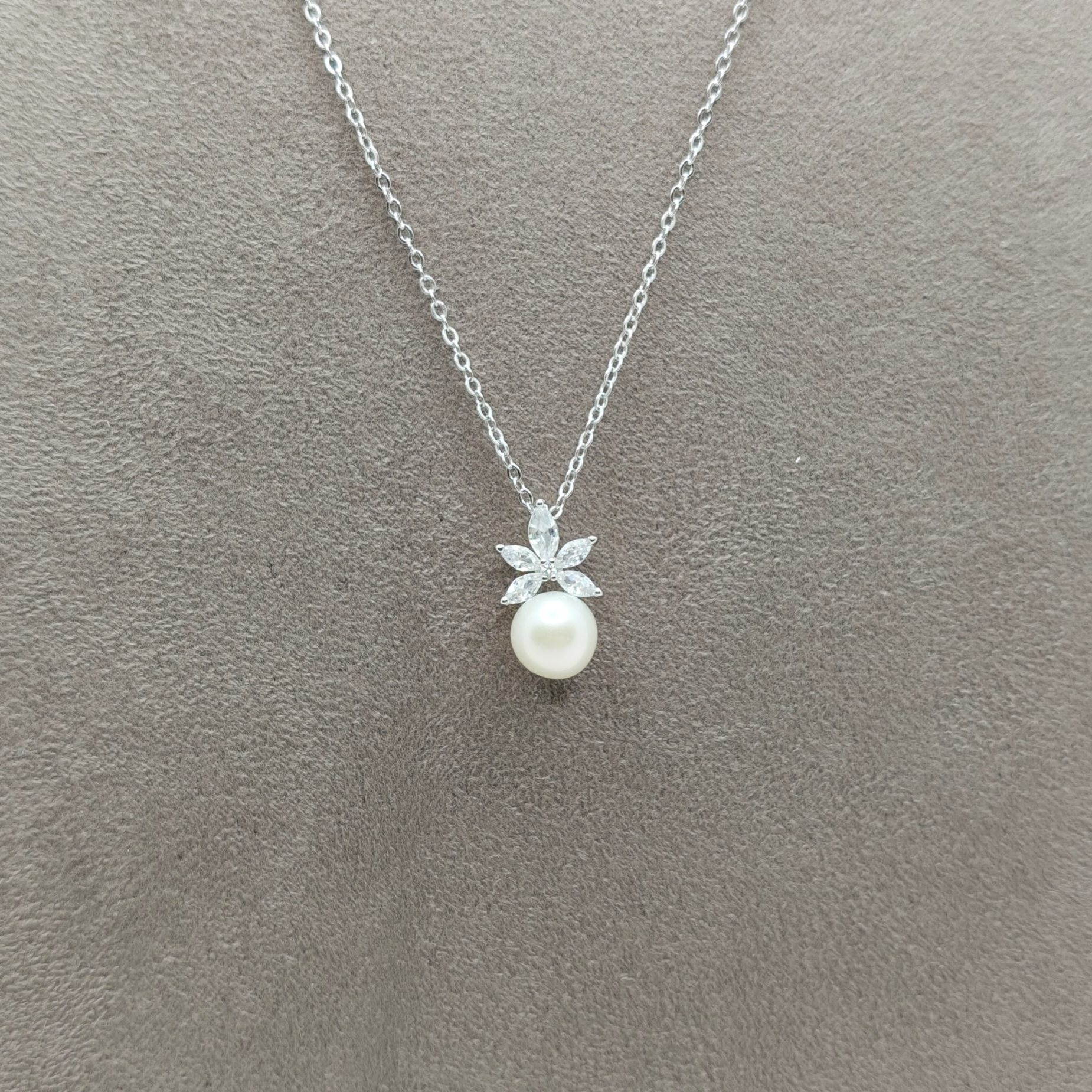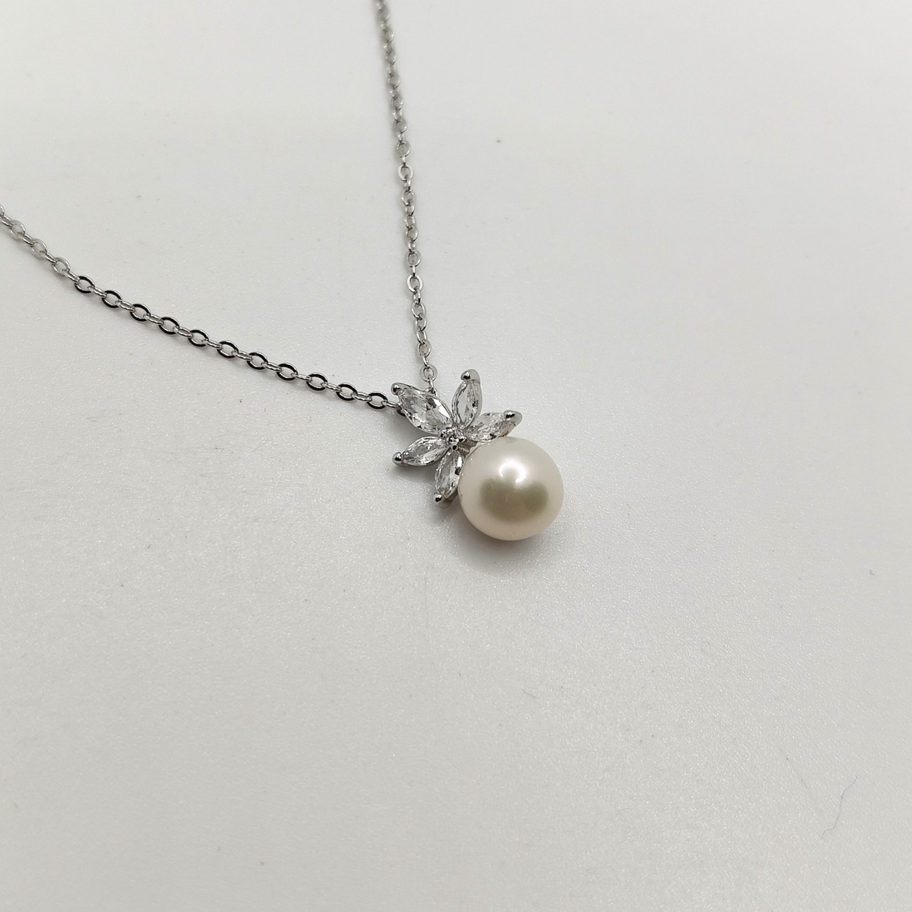 Collana con perla e zirconi in argento 925, chiusura a moschettone lunghezza regolabile