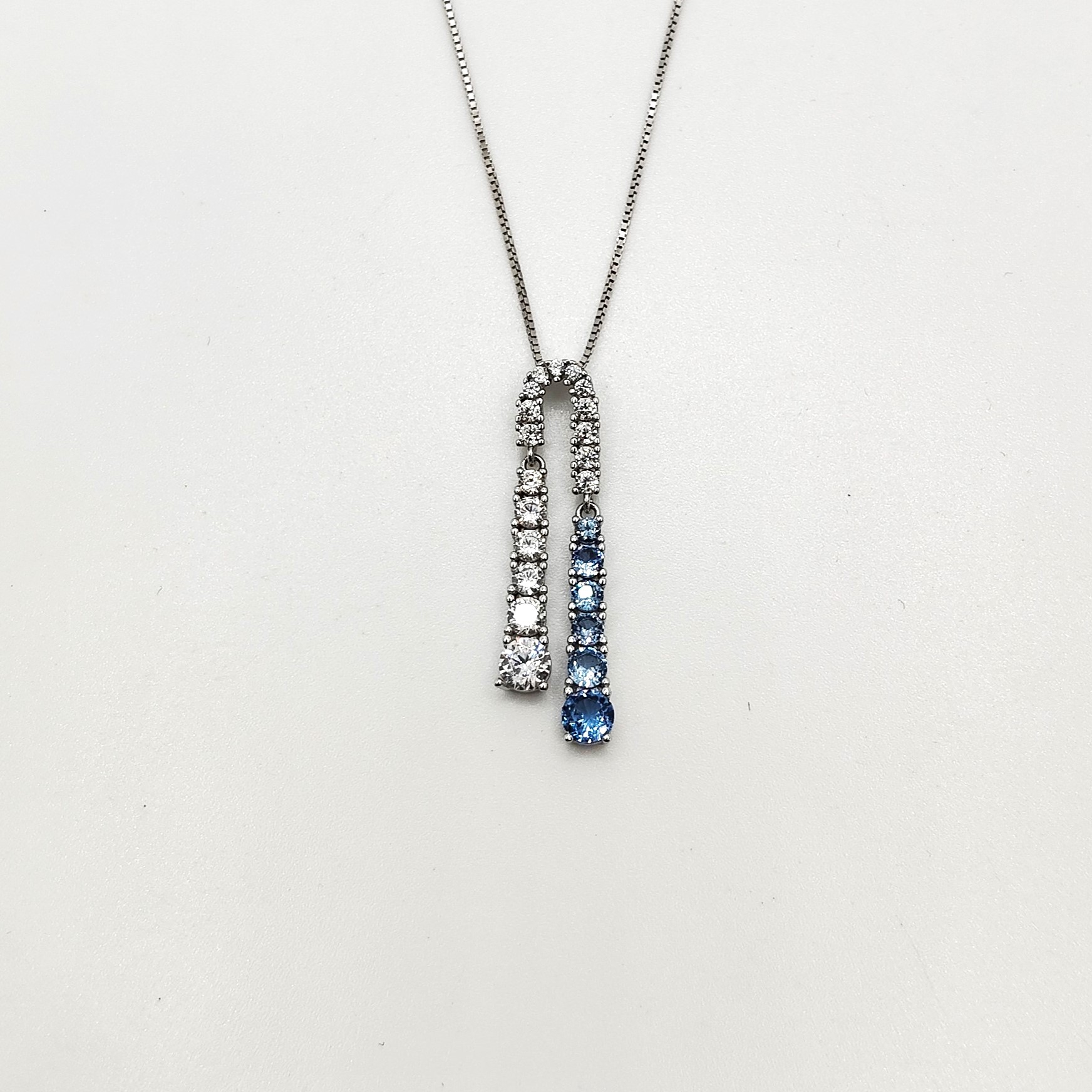 Collana in argento 925 con zirconi bianchi e azzurri, chiusura a moschettone