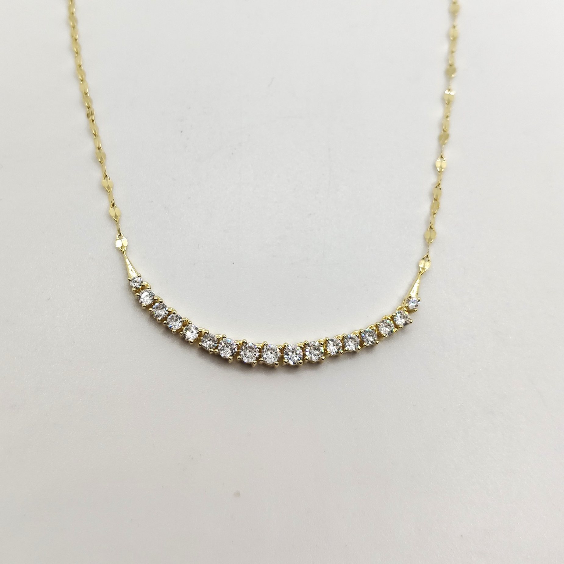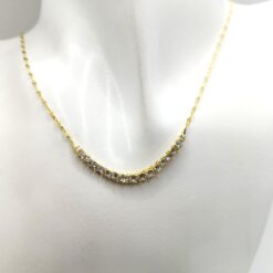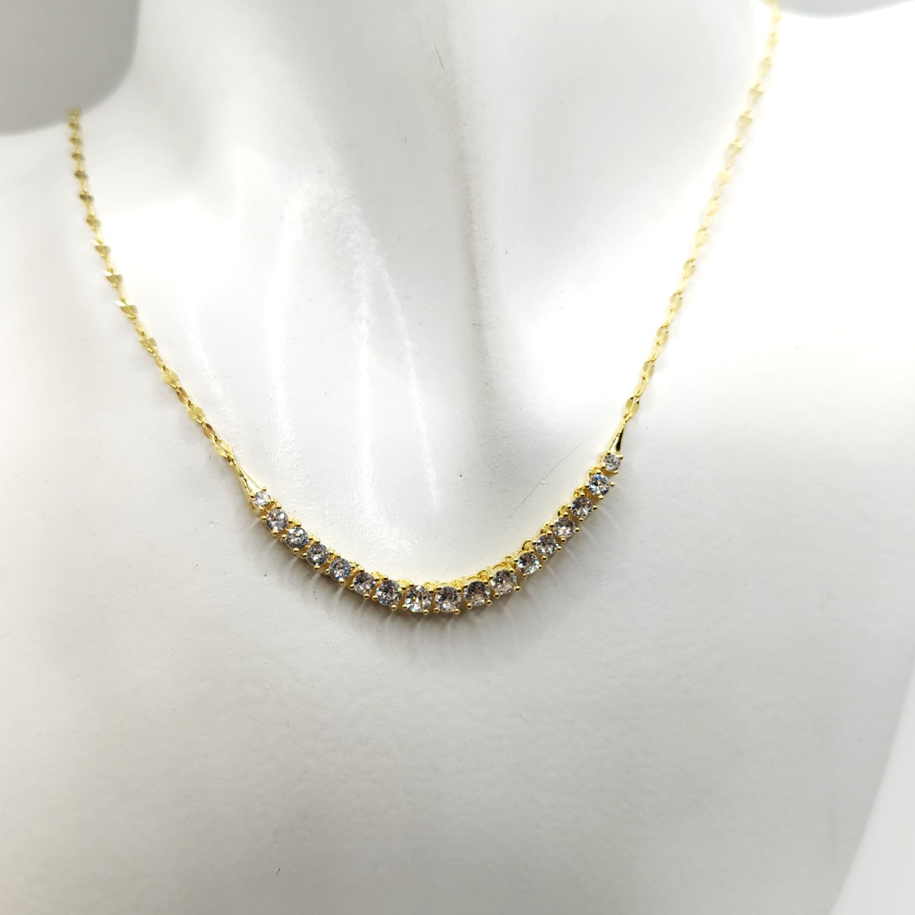 Collana tennis centrale in argento 925 placcato oro giallo e pietre bianche con chiusura a moschettone, catena forzatina diamantata