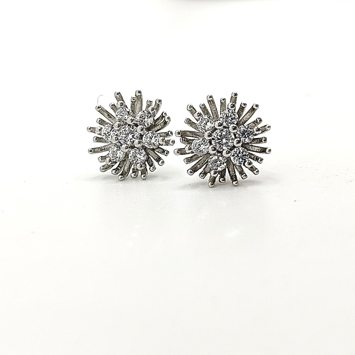 Orecchini in argento 925 a forma di margherita con zirconi centrali, chiusura a vite