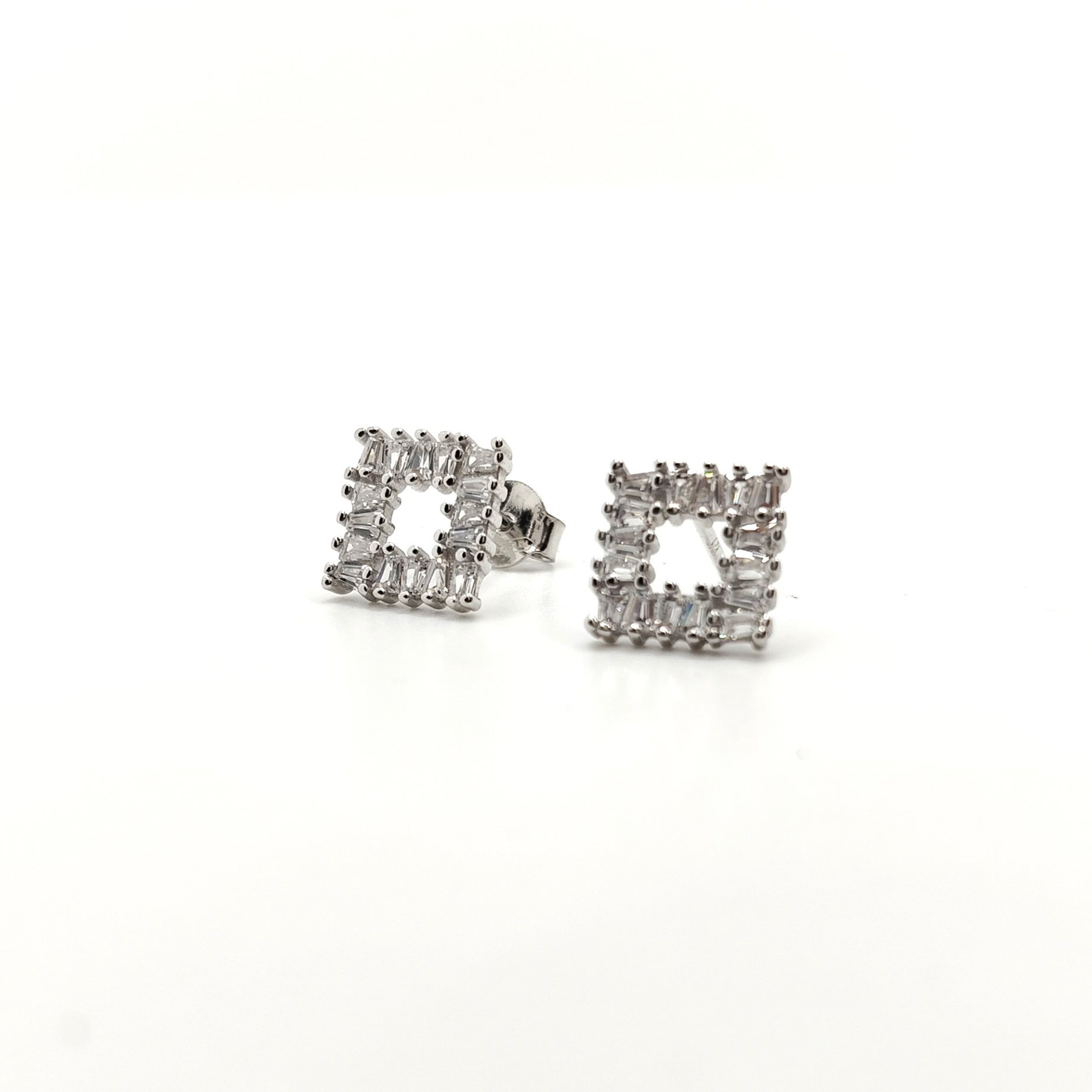Orecchini a forma di quadrato con zirconi in argento 925 chiusura a vite
