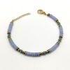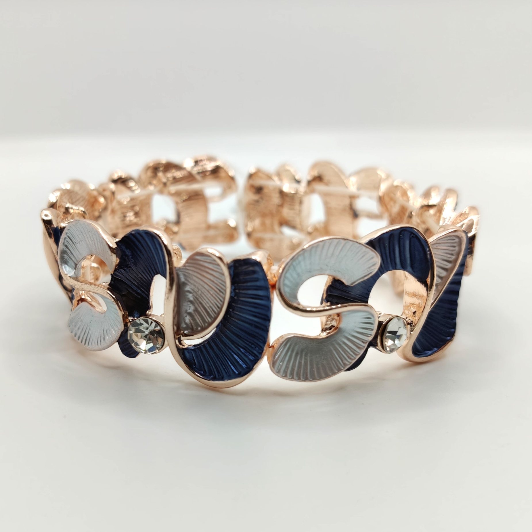 Bracciale urania collezione armonia in ottone placcato oro rosa con dettagli irregolari smaltati blu grigio avorio, chiusura a molla