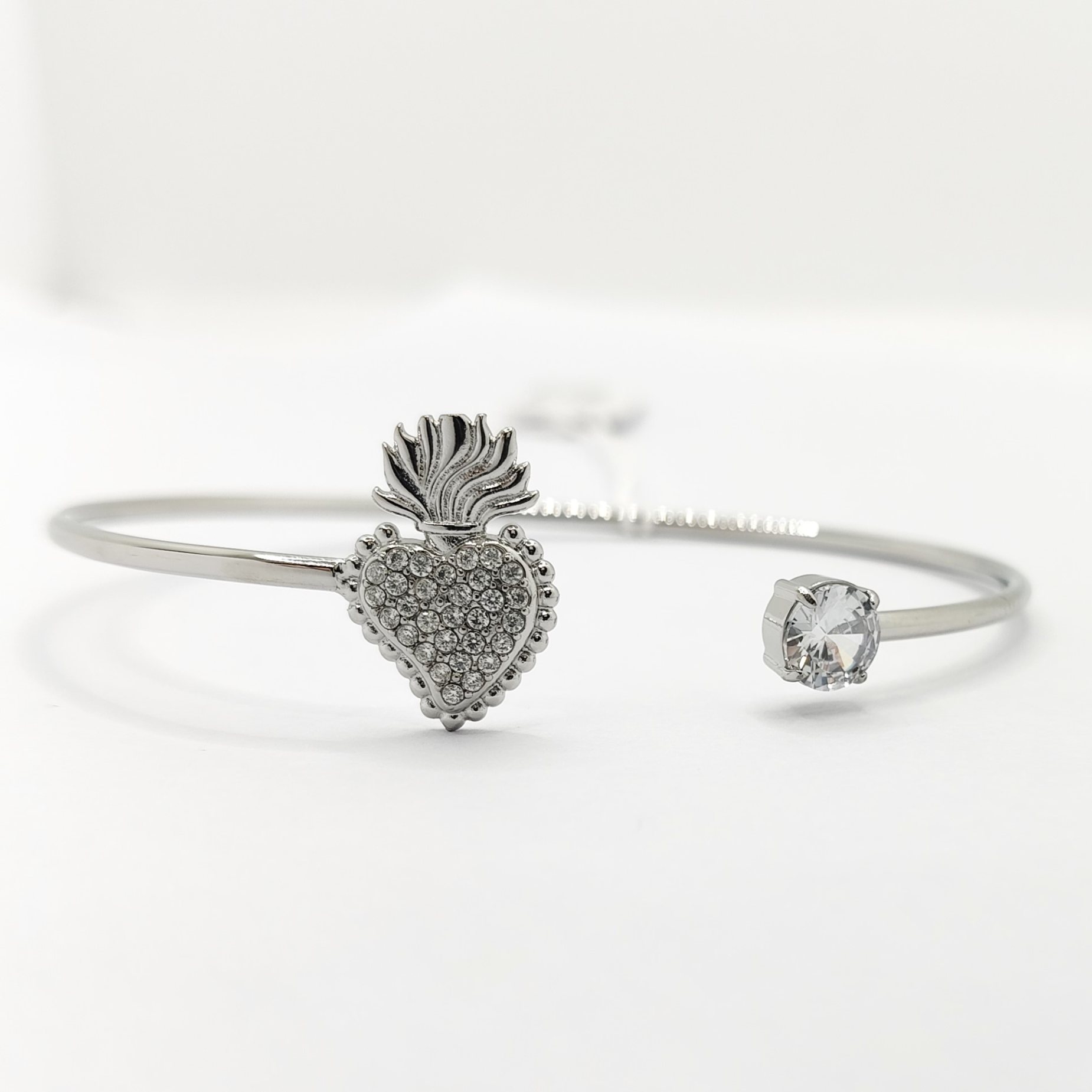 Bracciale urania rigido in acciaio con cuore sacro leggermente regolabile