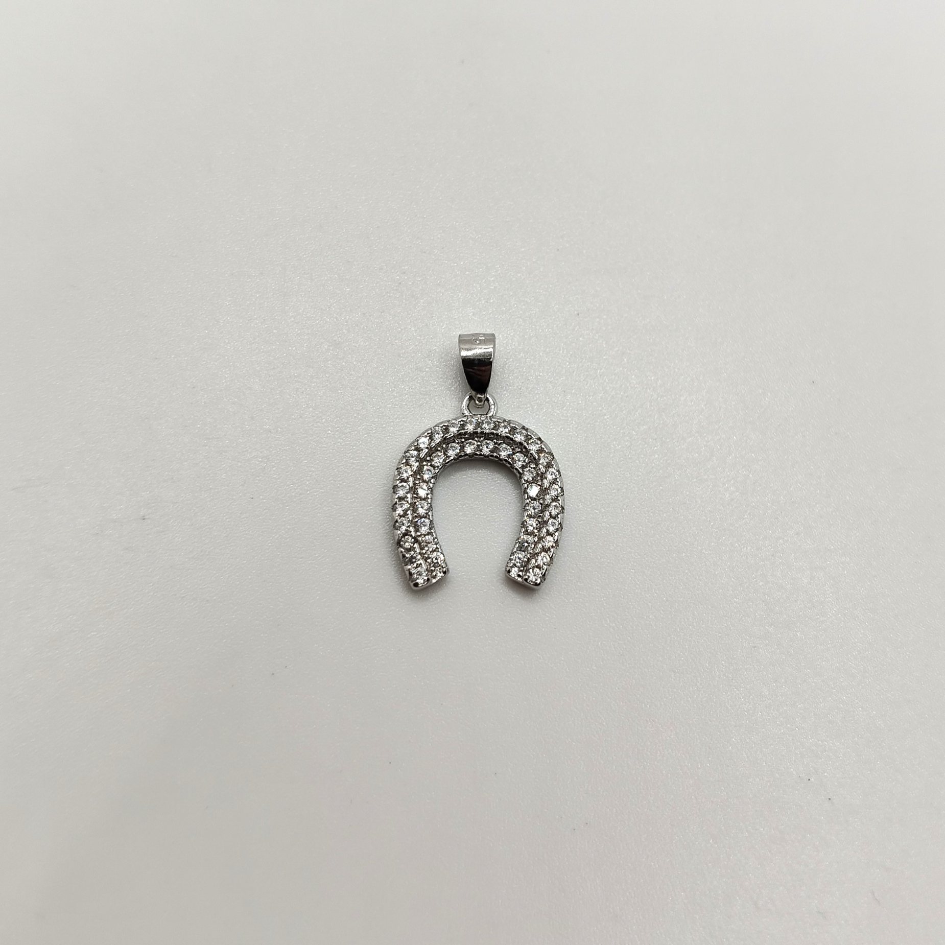 ciondolo portafortuna in argento 925 con la forma del ferro di cavallo ricoperto di zirconi. il ciondolo viene venduto senza catenina; è possibile apporre una catenina dalla sezione apposita.
