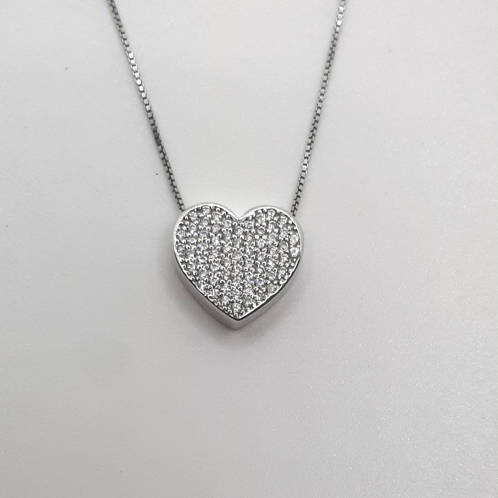 Collana a forma di cuore in argento 925 con zirconi, chiusura a moschettone