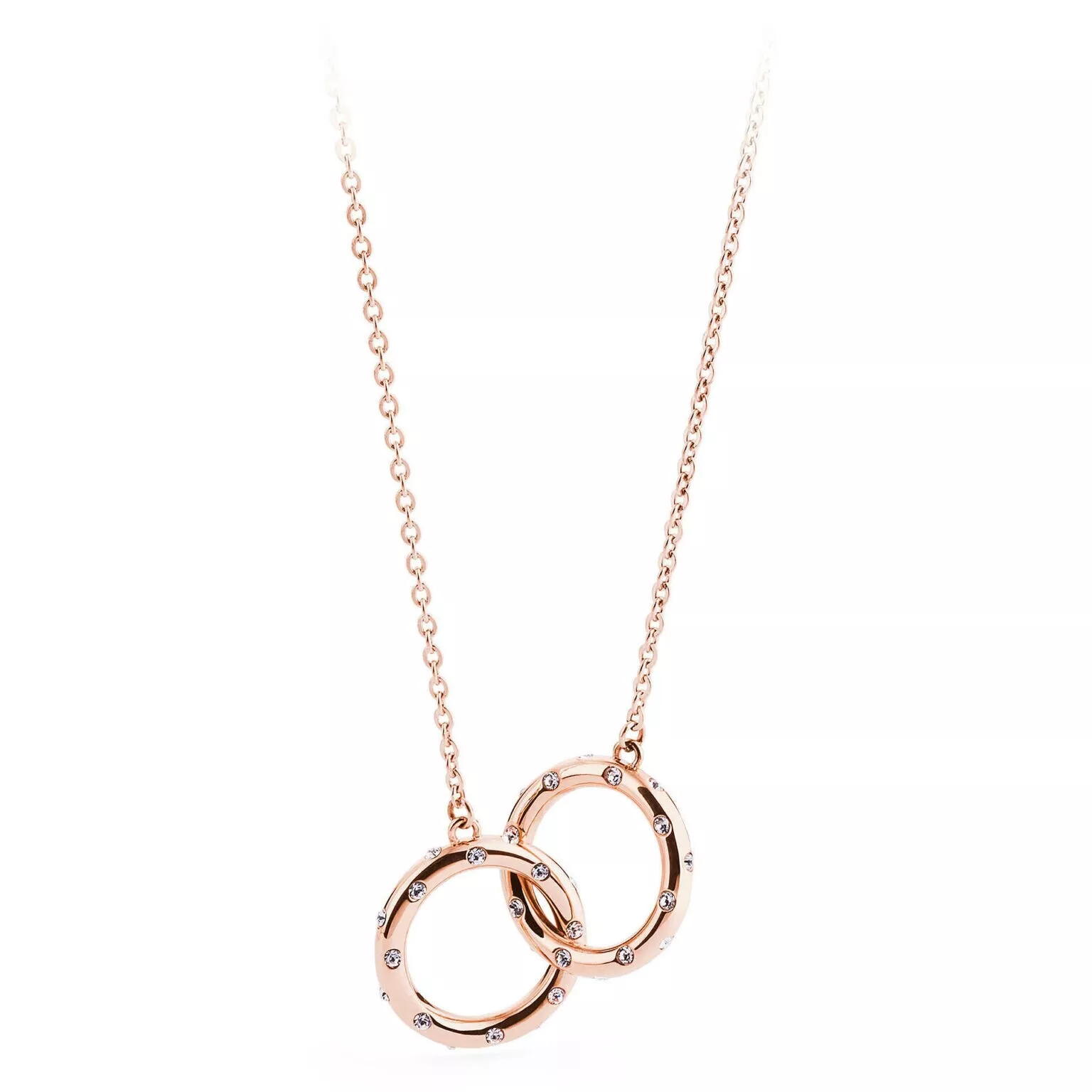 Collana con anelli intrecciati in acciaio 316L placcato oro rosa con swarovski
