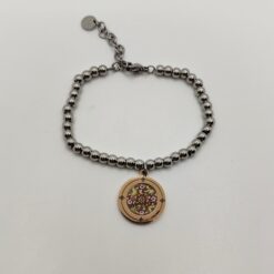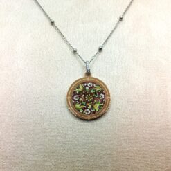 Collana lunga con pendente in acciaio 316L. Il pendente si presenta placcato oro giallo con stampa floreale.