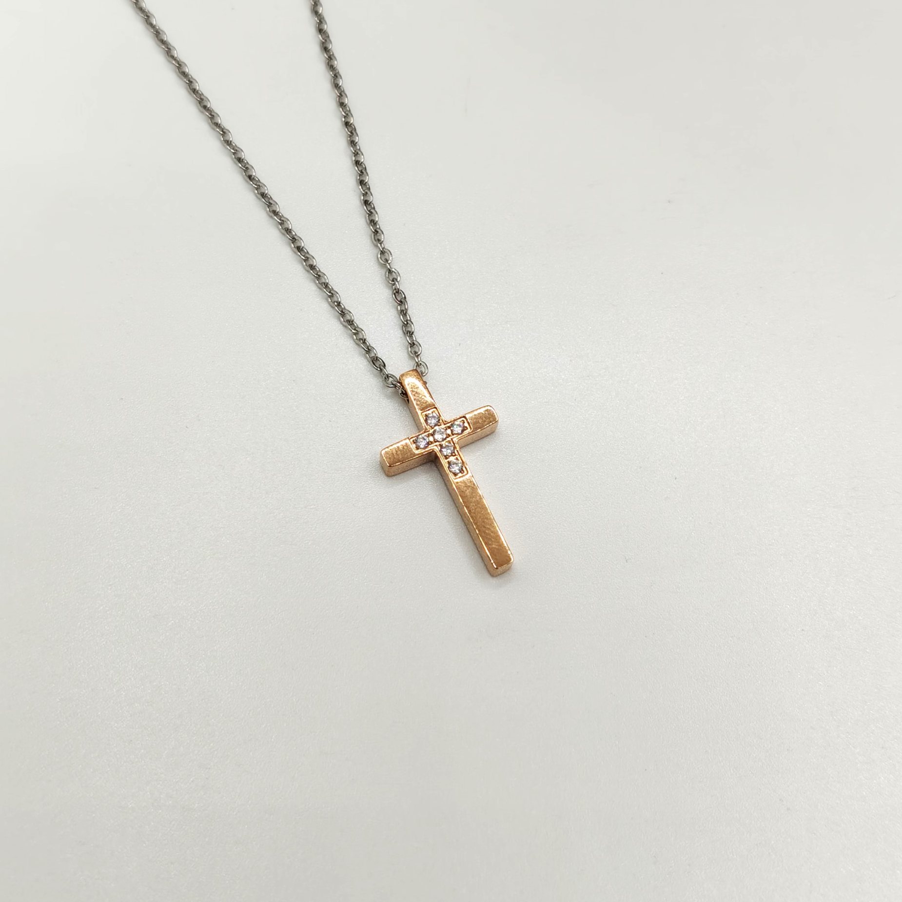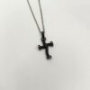 Collana in acciaio 316Lplaccato oro giallo con zirconi bianchi incastonati su una base a forma di croce; chiusura a moschettone