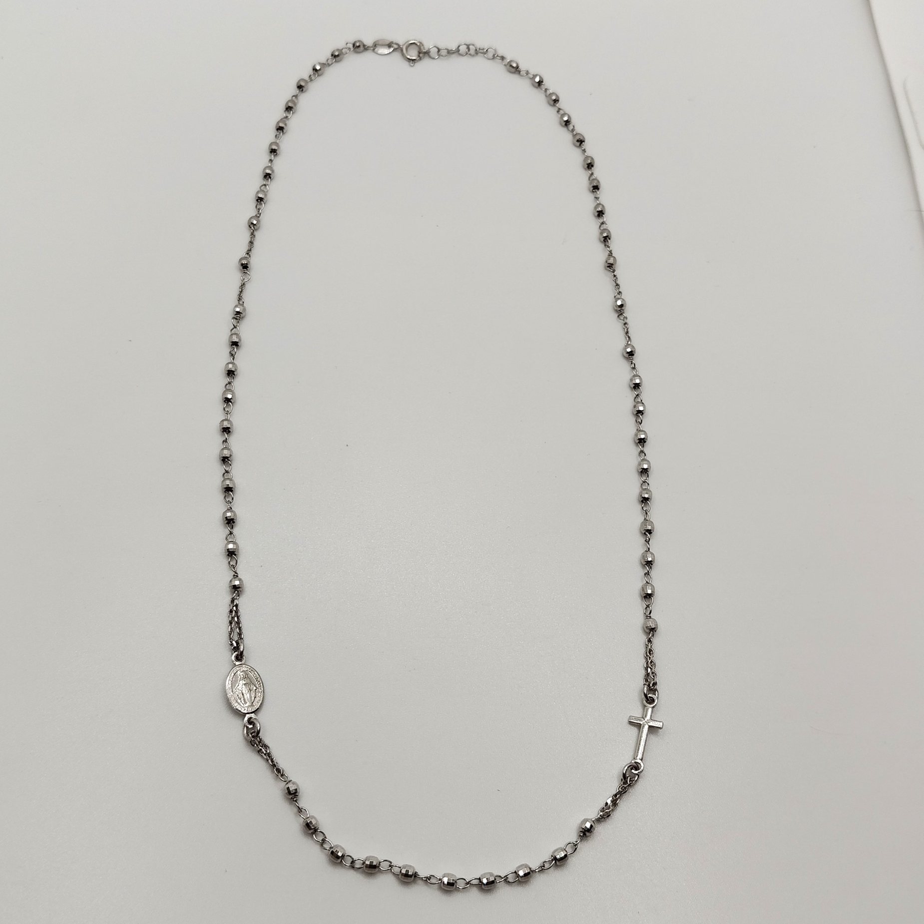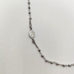 Collana rosario in argento 925 con chiusura a moschettone, grani in argento con crocifisso e madonnina