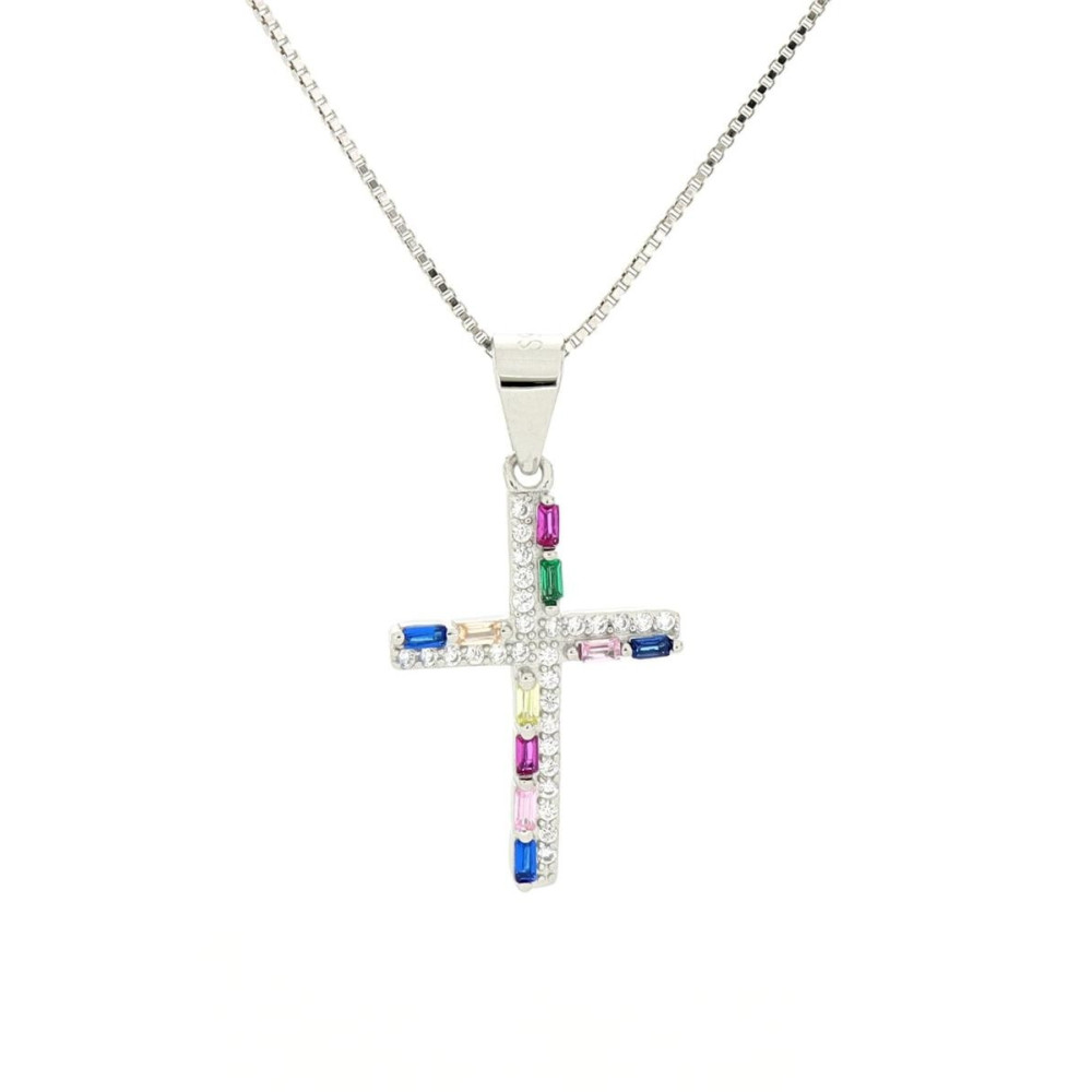 COLLANA URANIA CROCE COLORATA IN ARGENTO