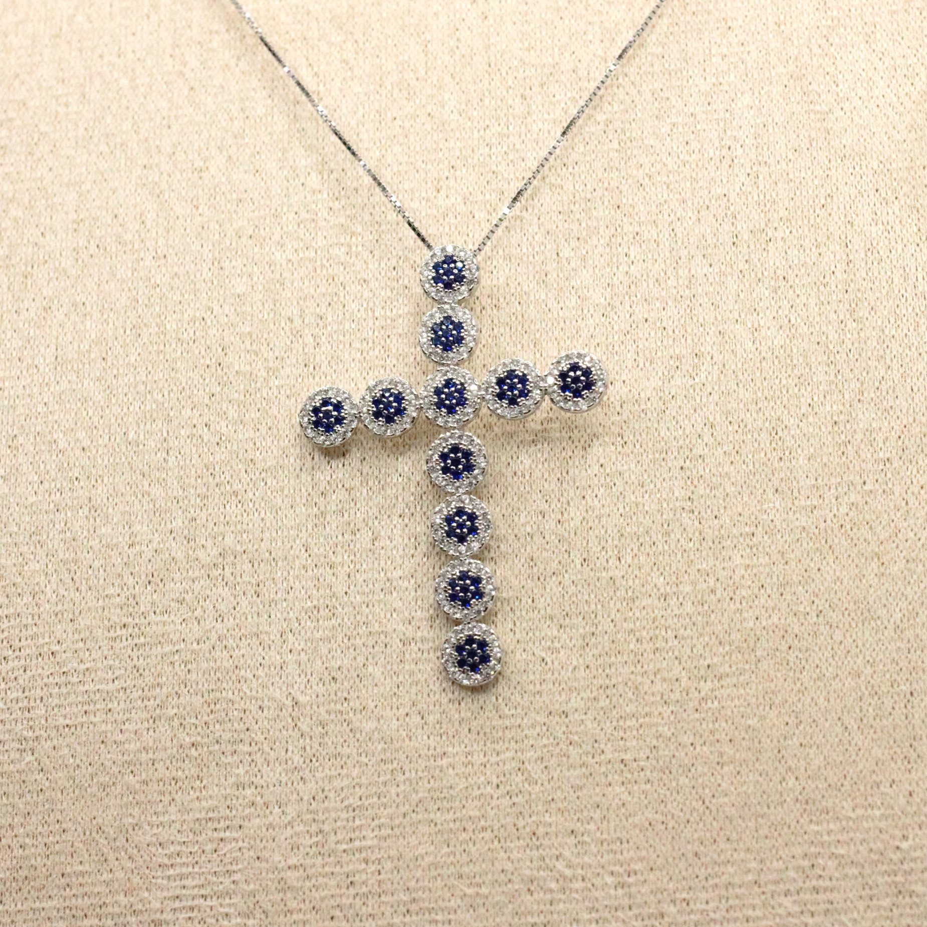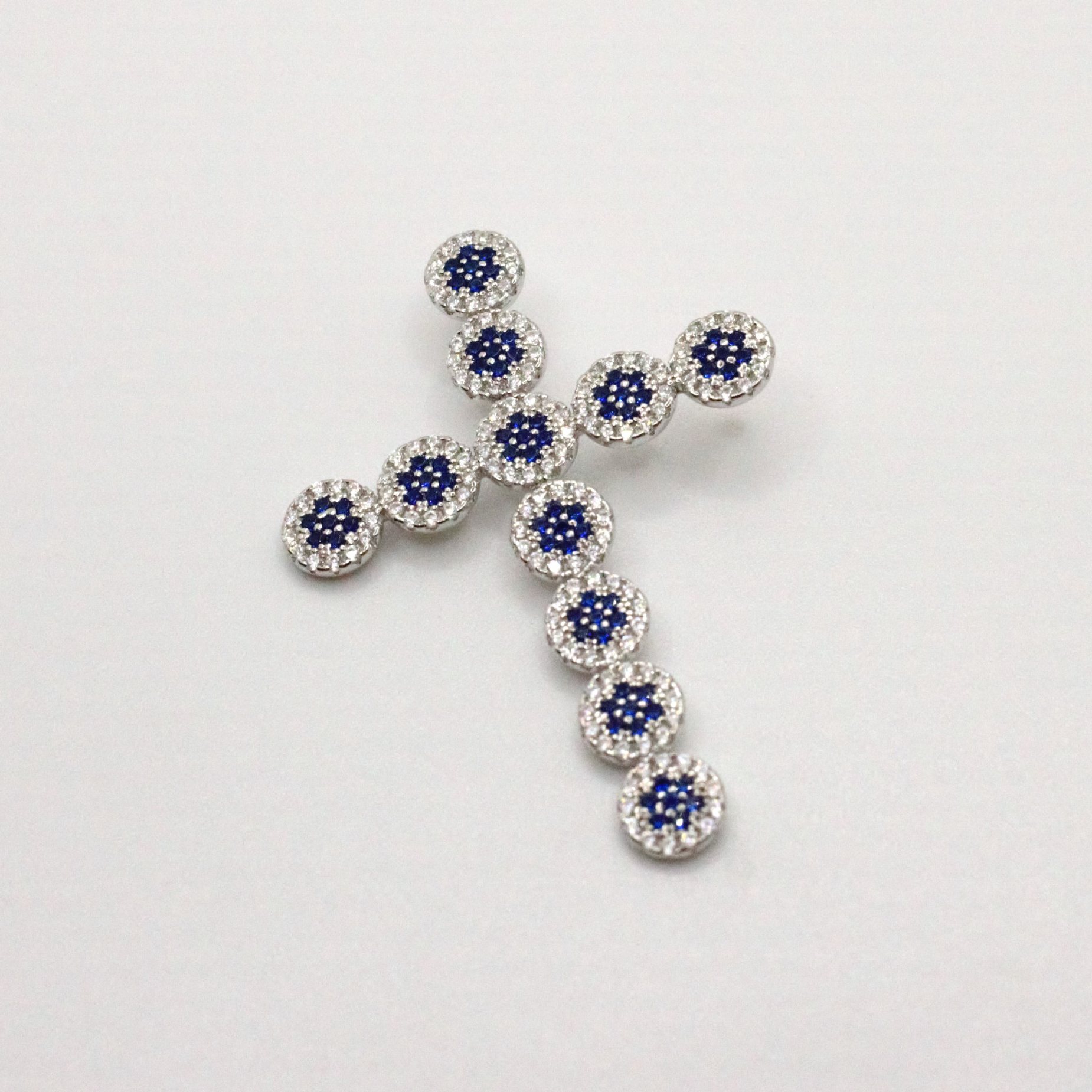 BOCCARDO GIOIELLI CROCE GRANDE CON ZIRCONI BIANCHI E BLU