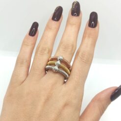 Mikiko anello in argento 925 e gemme swarovski blu e bianche laterali