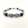 Bracciale da uomo semirigido in pietre azzurre, blu, nere e pepite di acciaio con chiusura a moschettone possibilità di essere regolato