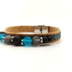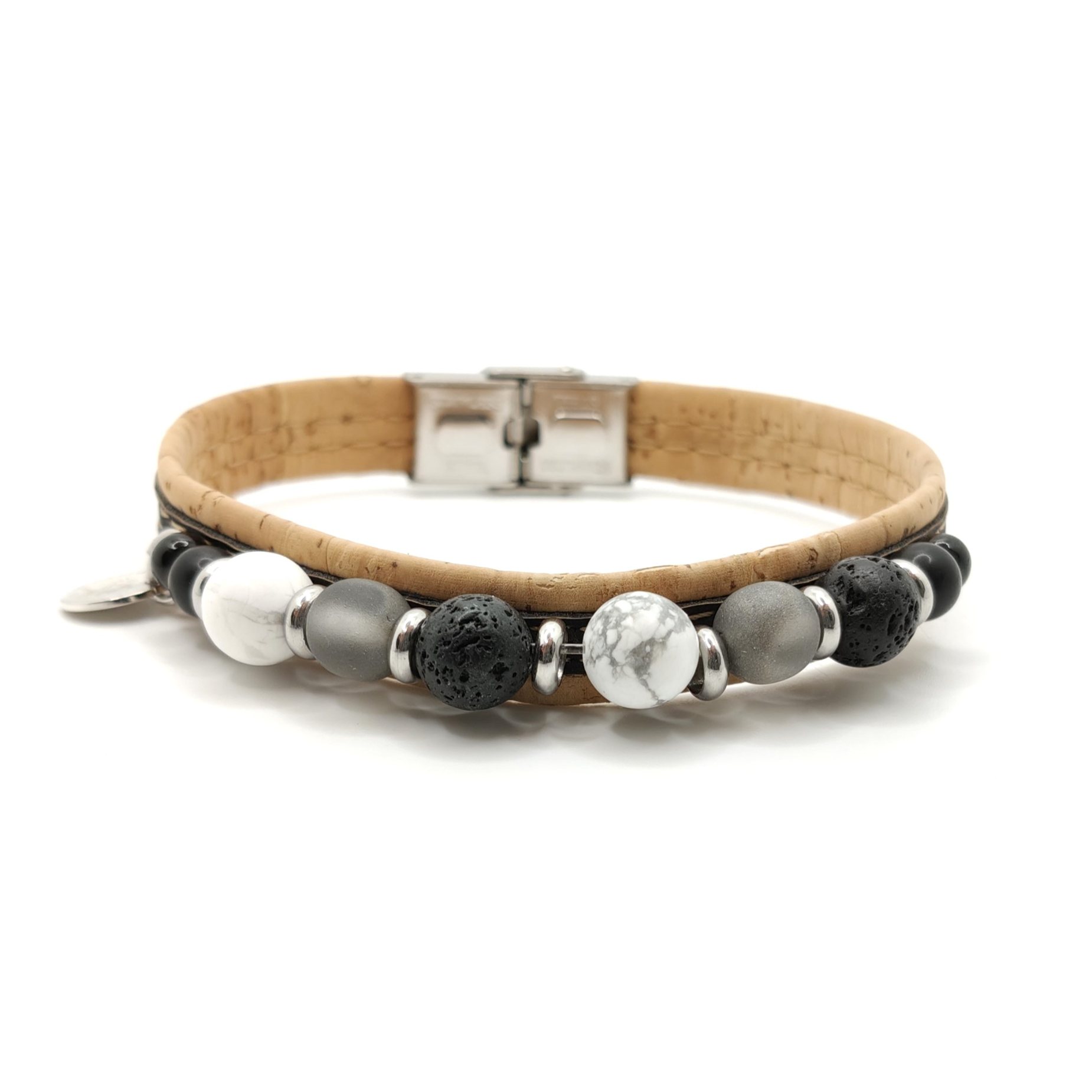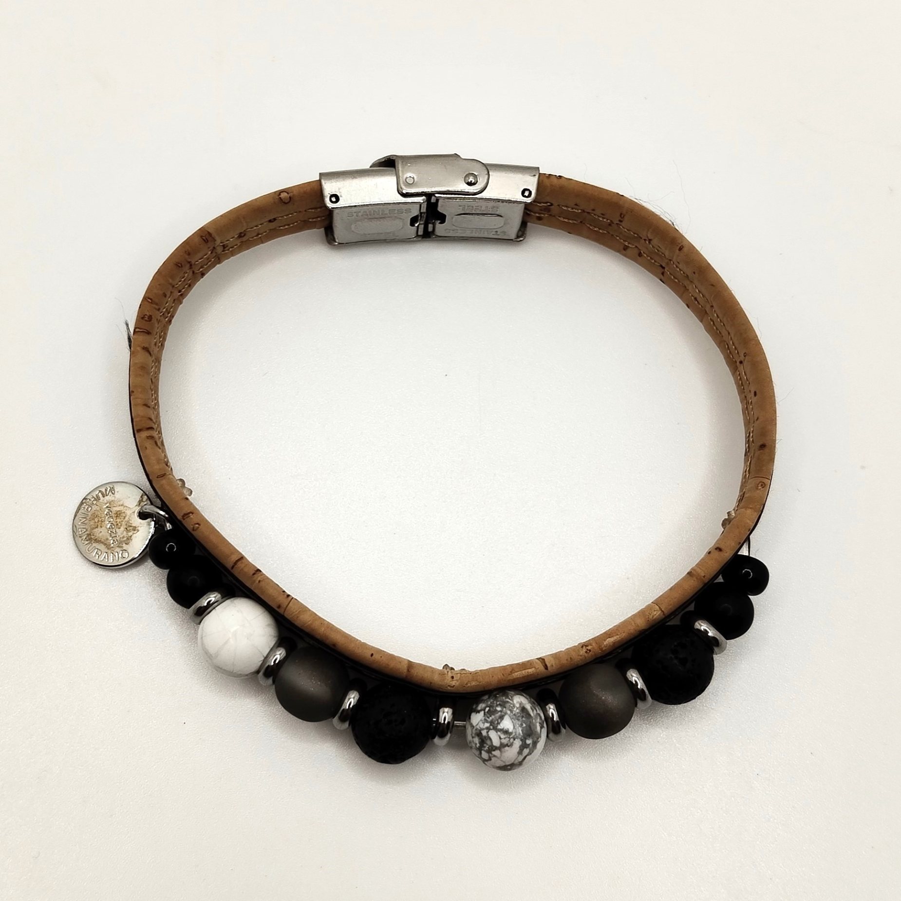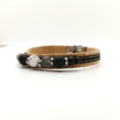 Bracciale da uomo in sughero con chiusura a incastro sicura e pietre; possibilità di essere regolato
