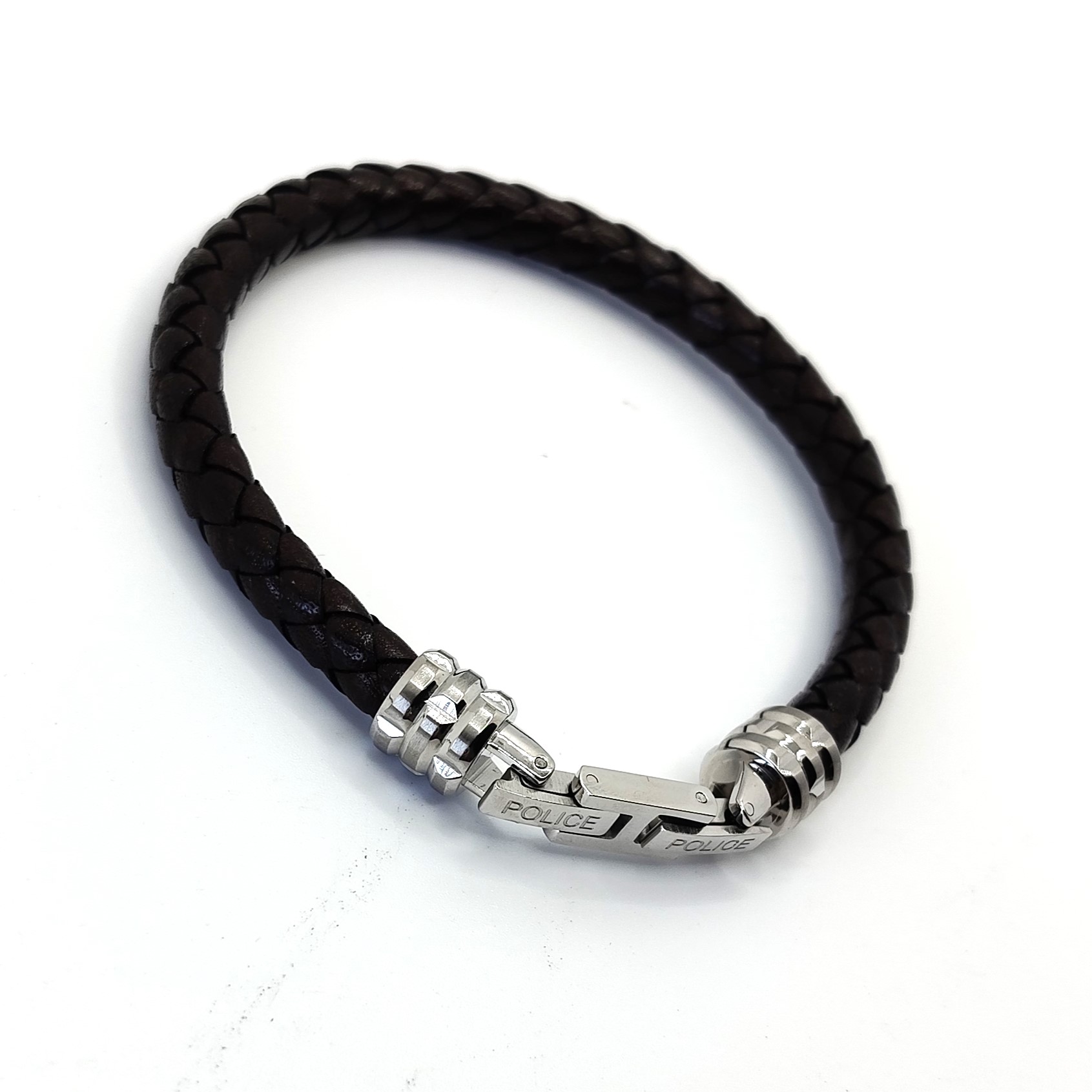 POLICE BRACCIALE IN ACCIAIO E PELLE MARRONE