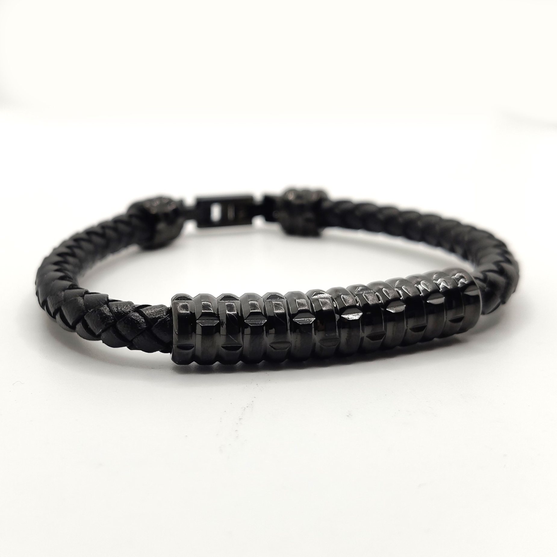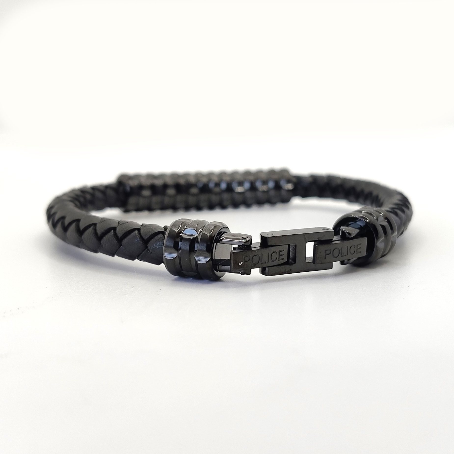 POLICE BRACCIALE IN ACCIAIO E PELLE NERO