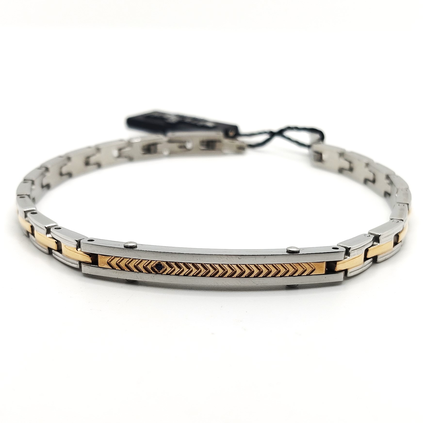 SIMPLIGOLD GIOIELLI BRACCIALE DA UOMO IN ACCIAIO BICOLORE CON ZAFFIRO