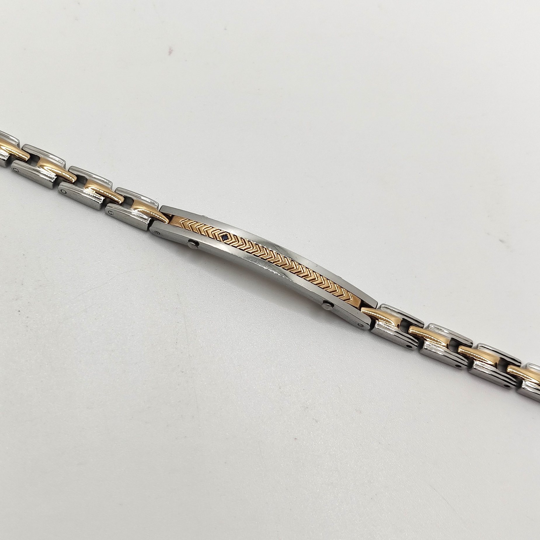 Bracciale da uomo in acciaio con targa lavorata e zaffiro nella parte superiore. La lunghezza è variabile grazie alla doppia chiusura facilmente rimuovibile.