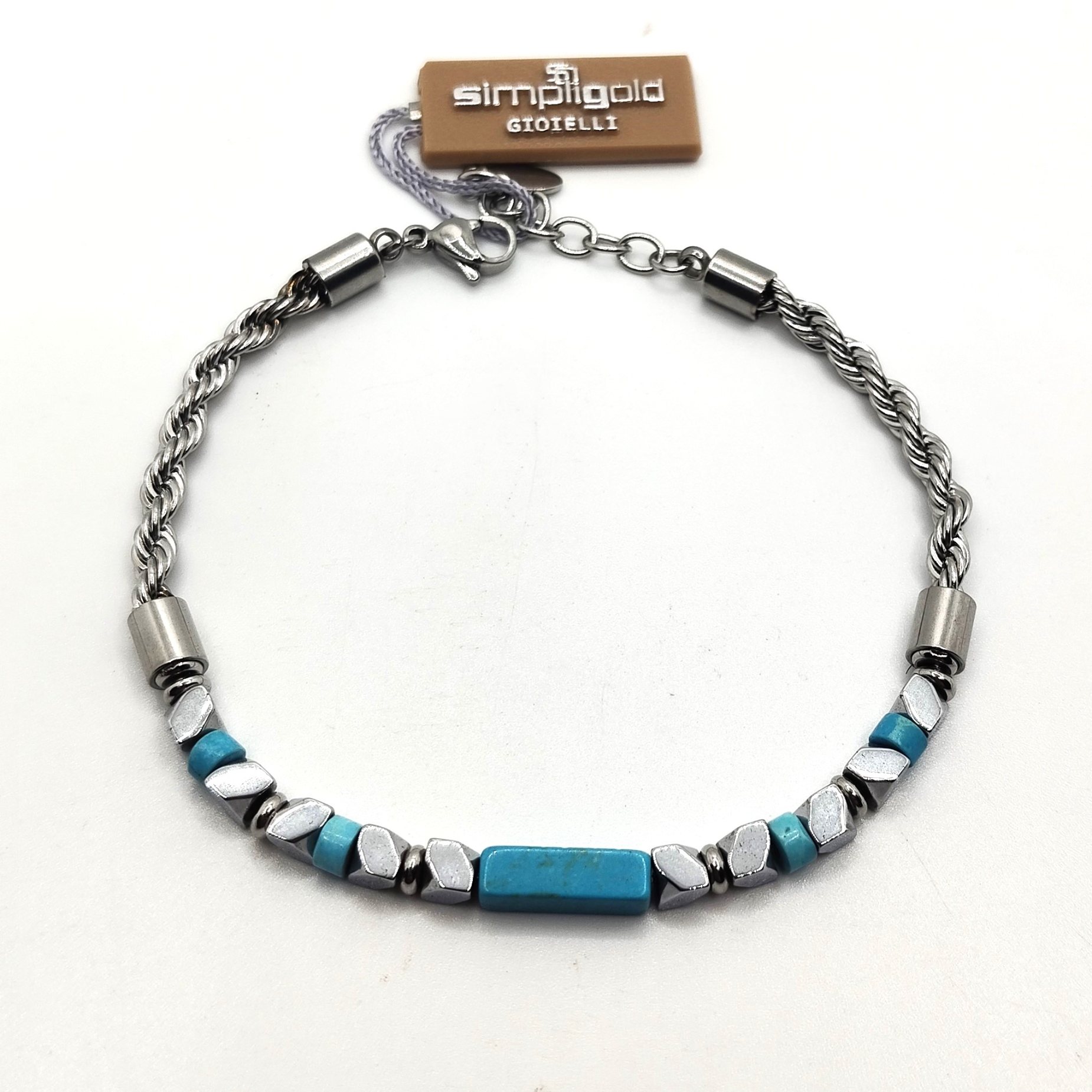 SIMPLIGOLD GIOIELLI BRACCIALE DA UOMO IN ACCIAIO E PIETRE TURCHESI