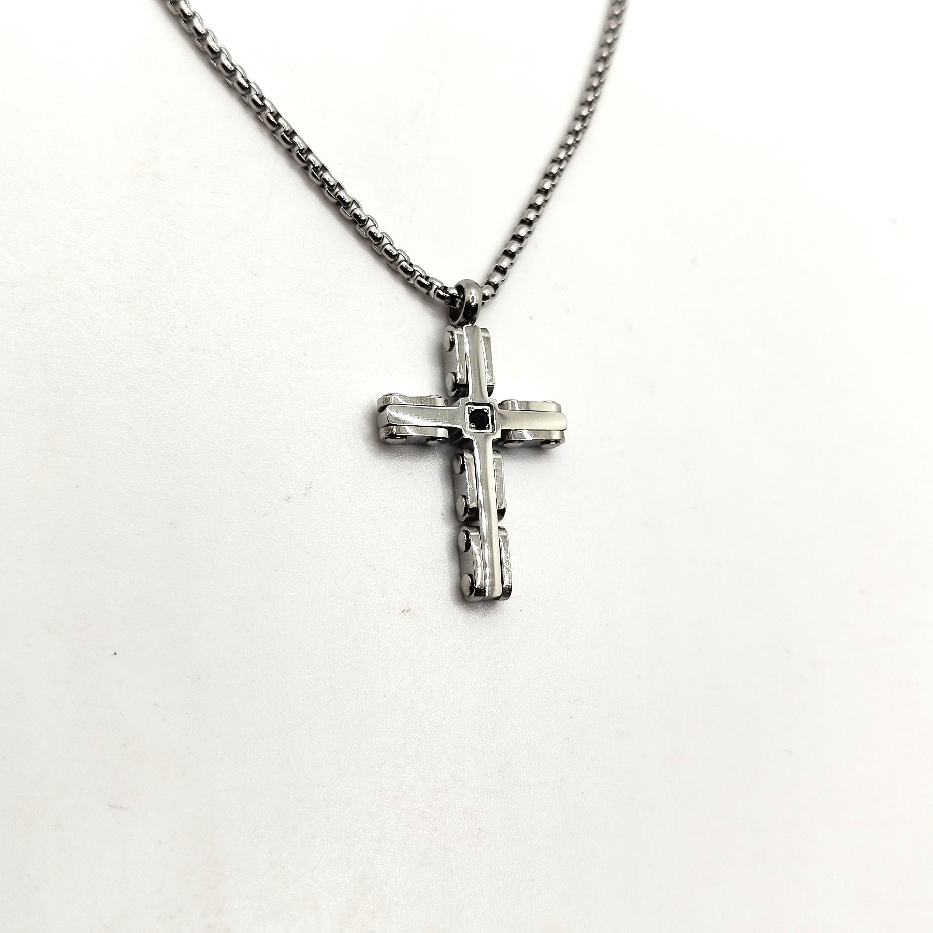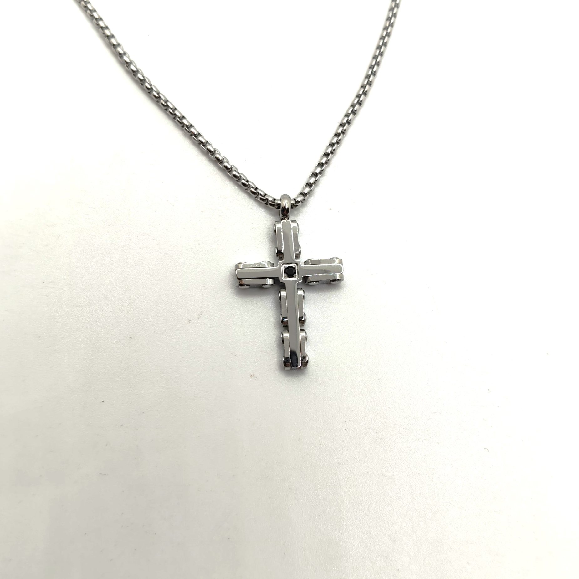 SIMPLIGOLD GIOIELLI COLLANA CROCE DA UOMO IN ACCIAIO BICOLORE