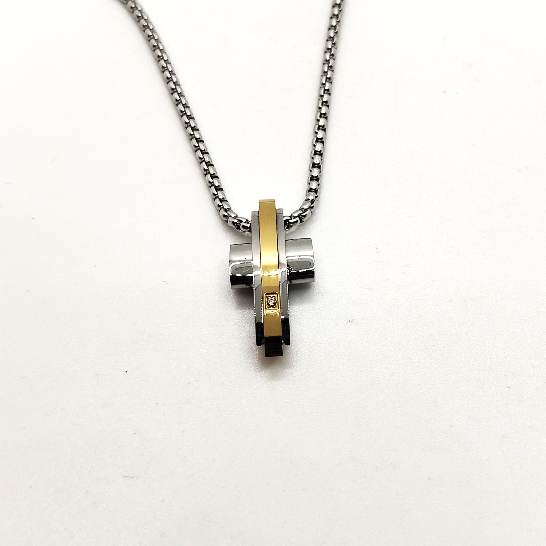 SIMPLIGOLD GIOIELLI COLLANA CROCE DA UOMO IN ACCIAIO BICOLORE