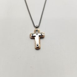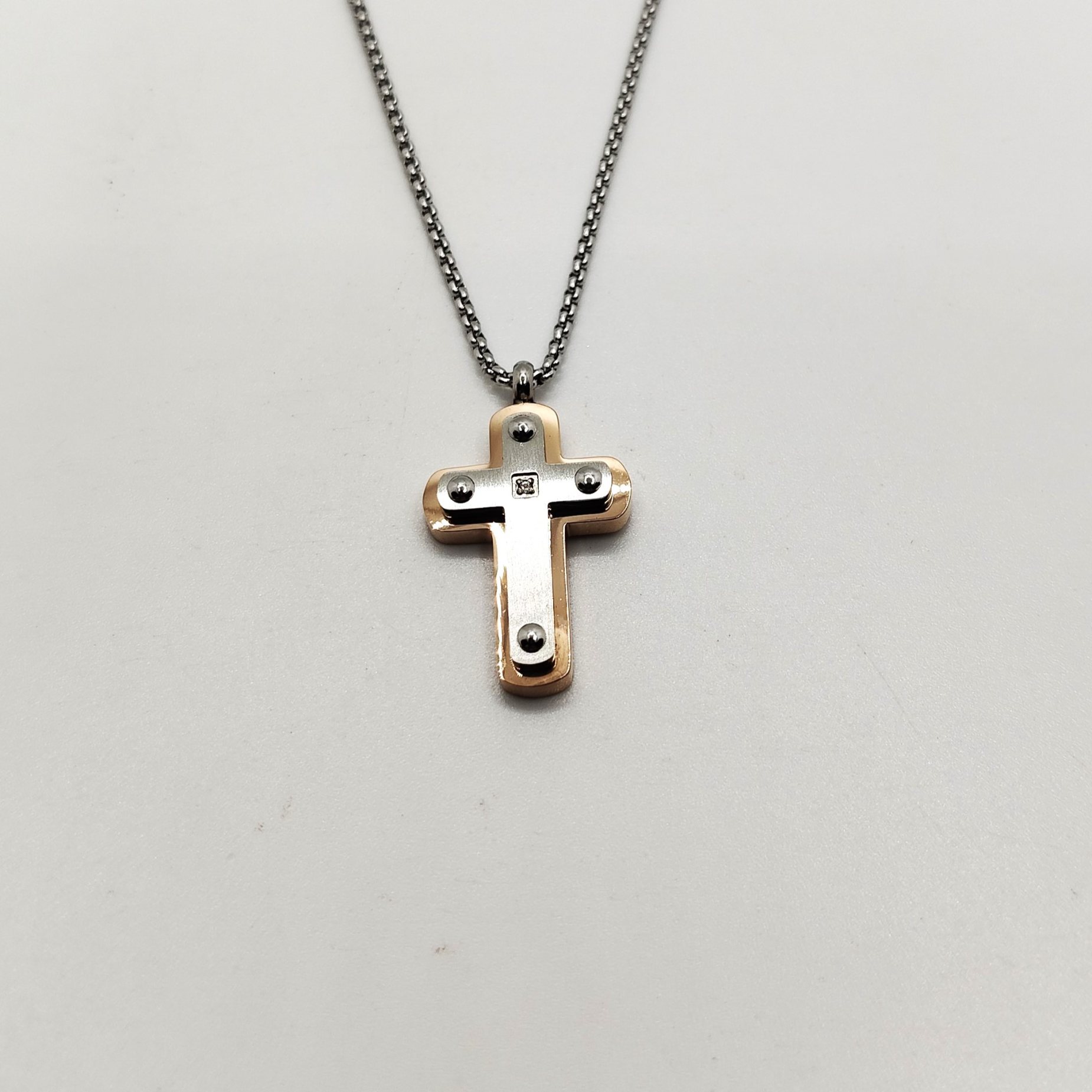 - centrale: croce con pietra centrale con base placcata oro rosa