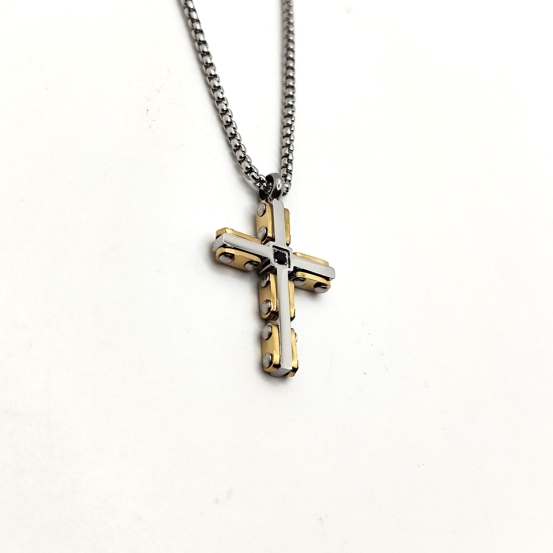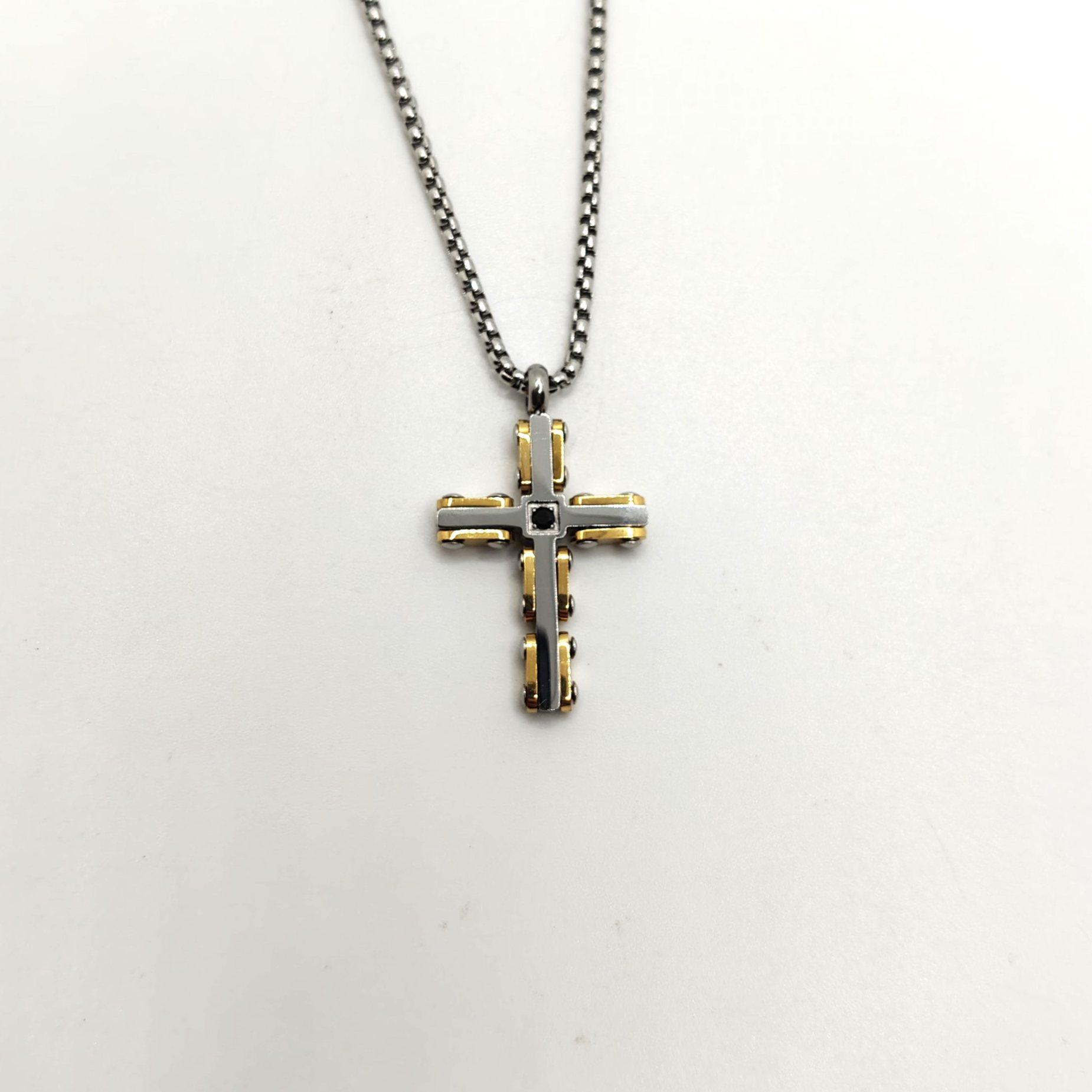 - centrale: croce con pietra nera centrale con dettagli placcati oro giallo
