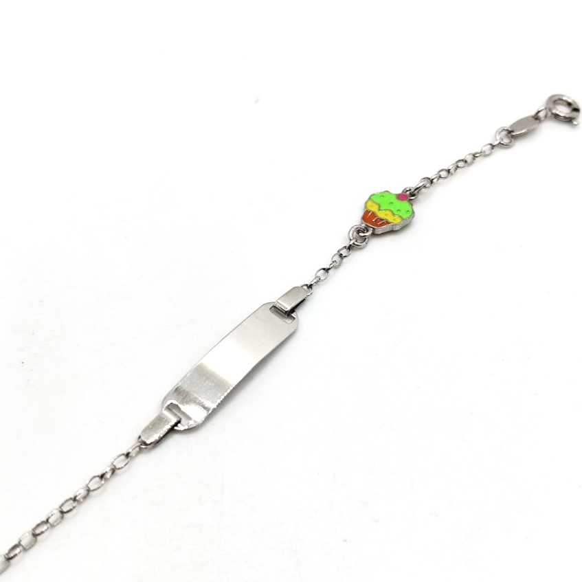 Bracciale da bambino in argento 925 con targa rettangolare e gelato con possibilità di incidere il nome gratuitamente