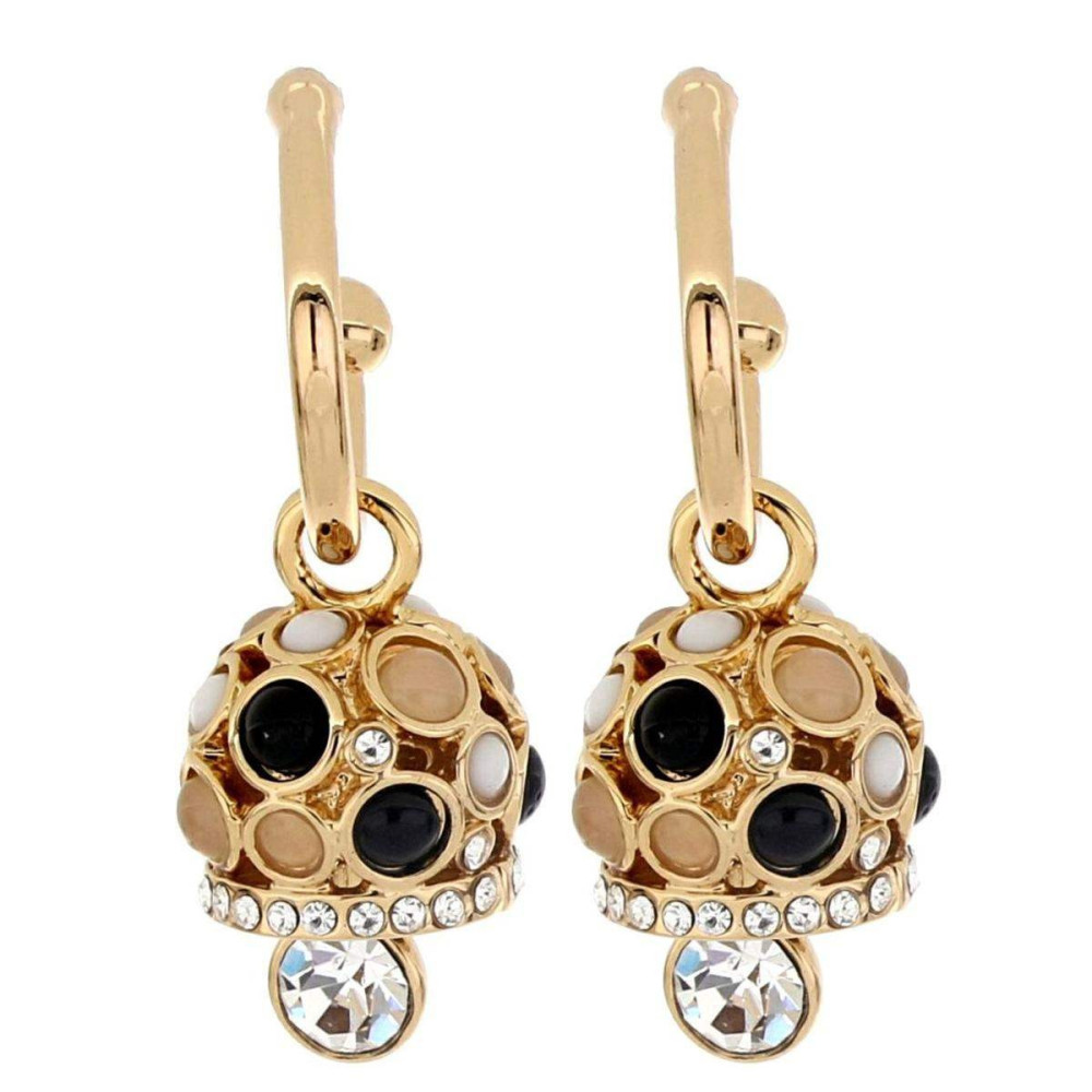 Orecchini urania in ottone smaltato beige bianco e nero con giro zirconi e chiusura con gommino